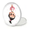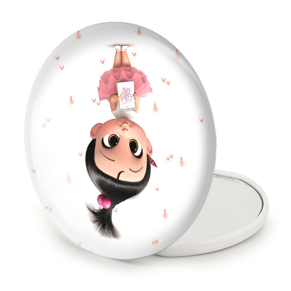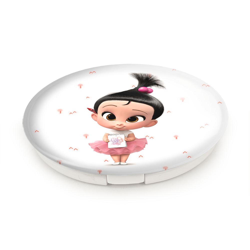 آینه های تاشو بچه رئیس Boss Baby خندالو، از جنس پلاستیک فشرده ABS تولید شده و به رنگ سفید می باشد. یکی از آینه ها ابعاد واقعی را نشان داده و دیگری با قابلیت بزرگنمایی، جزئیات را بهتر نمایش می دهد. ابعاد هر یک از آینه ها، دایره ای به قطر 7.5 سانت می باشد که نه خیلی بزرگ و غیر قابل استفاده در کیف آرایشی ست و نه خیلی کوچک که تصویر خاصی در آن مشاهده نشود. آینه تاشو بچه رئیس Boss Baby سایزی استاندارد و کارآمد دارد و در هر کیفی جا میگیرد. چاپ طرح بوسیله چاپگرهای دیجیتال شش رنگ با شفافیت و کیفیتی مثال زدنی بر روی یک وجه از بدنه ی آینه انجام گرفته و با روکش لمینت حرارتی پوشیده شده که در مقابل آسیب و خط و خش مقاوم بوده و کیفیت بالایی دارد. درب آینه بوسیله قفل بدنه ی آن، باز نمی ماند و کاملا بسته می شود و مناسب قرار گیری در کیف لوازم آرایش و کیف های کوچک دستی نیز هست. آینه های تاشو بچه رئیس Boss Baby خندالو با تنوع طرحی بسیار بالا، سلیقه هر نوع مخاطبی را تامین میکند.