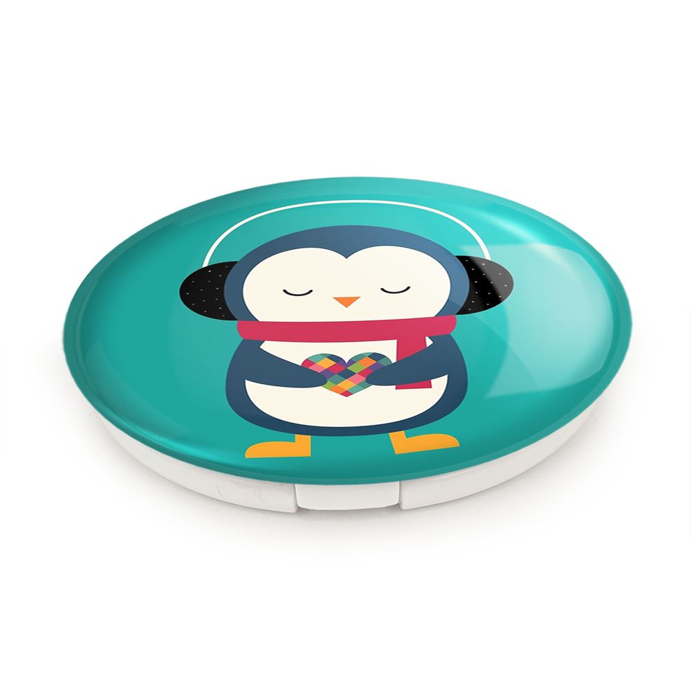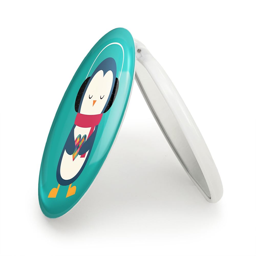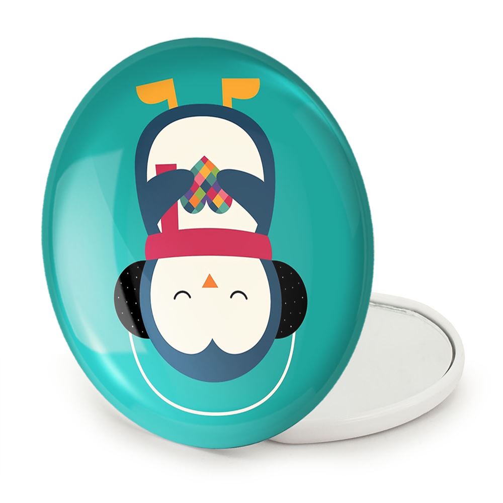 آینه های تاشو بچه پنگوئن خندالو، از جنس پلاستیک فشرده ABS تولید شده و به رنگ سفید می باشد. یکی از آینه ها ابعاد واقعی را نشان داده و دیگری با قابلیت بزرگنمایی، جزئیات را بهتر نمایش می دهد. ابعاد هر یک از آینه ها، دایره ای به قطر 7.5 سانت می باشد که نه خیلی بزرگ و غیر قابل استفاده در کیف آرایشی ست و نه خیلی کوچک که تصویر خاصی در آن مشاهده نشود. آینه تاشو بچه پنگوئن سایزی استاندارد و کارآمد دارد و در هر کیفی جا میگیرد. چاپ طرح بوسیله چاپگرهای دیجیتال شش رنگ با شفافیت و کیفیتی مثال زدنی بر روی یک وجه از بدنه ی آینه انجام گرفته و با روکش لمینت حرارتی پوشیده شده که در مقابل آسیب و خط و خش مقاوم بوده و کیفیت بالایی دارد. درب آینه بوسیله قفل بدنه ی آن، باز نمی ماند و کاملا بسته می شود و مناسب قرار گیری در کیف لوازم آرایش و کیف های کوچک دستی نیز هست. آینه های تاشو بچه پنگوئن خندالو با تنوع طرحی بسیار بالا، سلیقه هر نوع مخاطبی را تامین میکند.