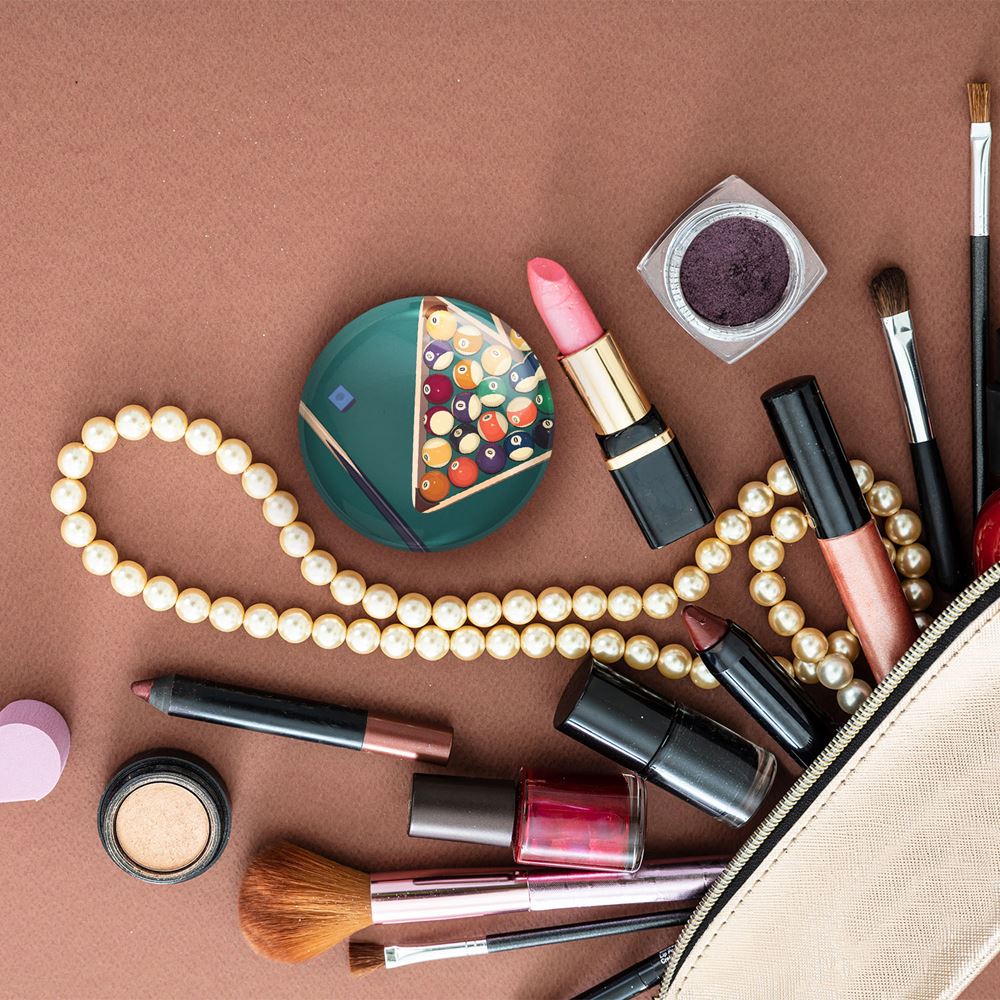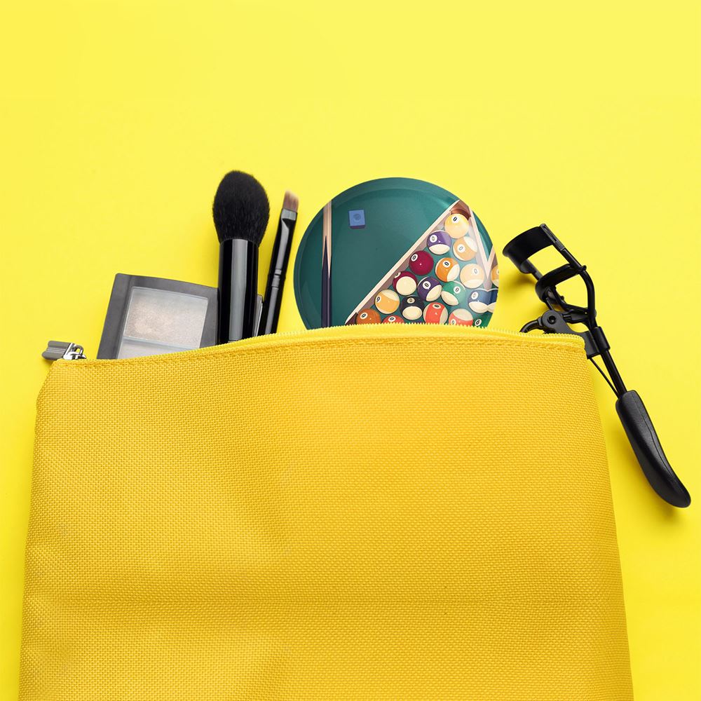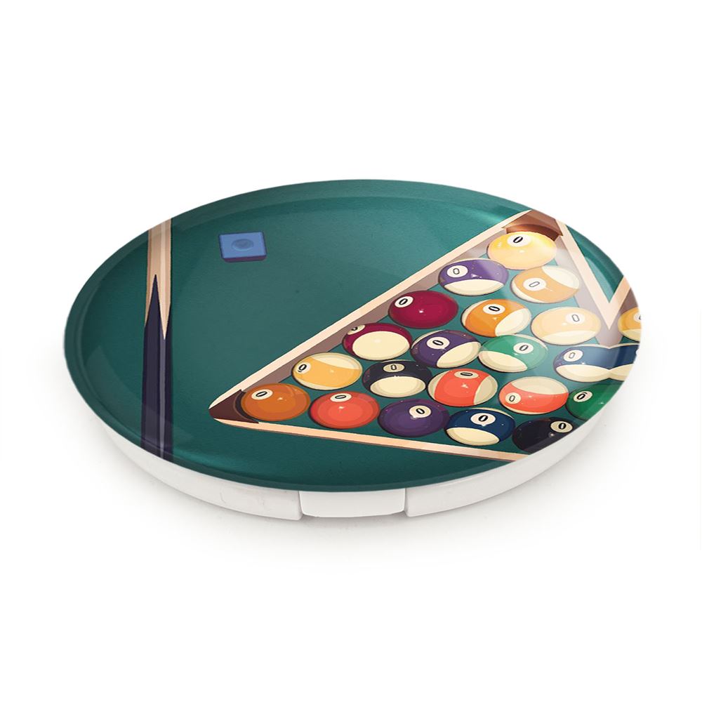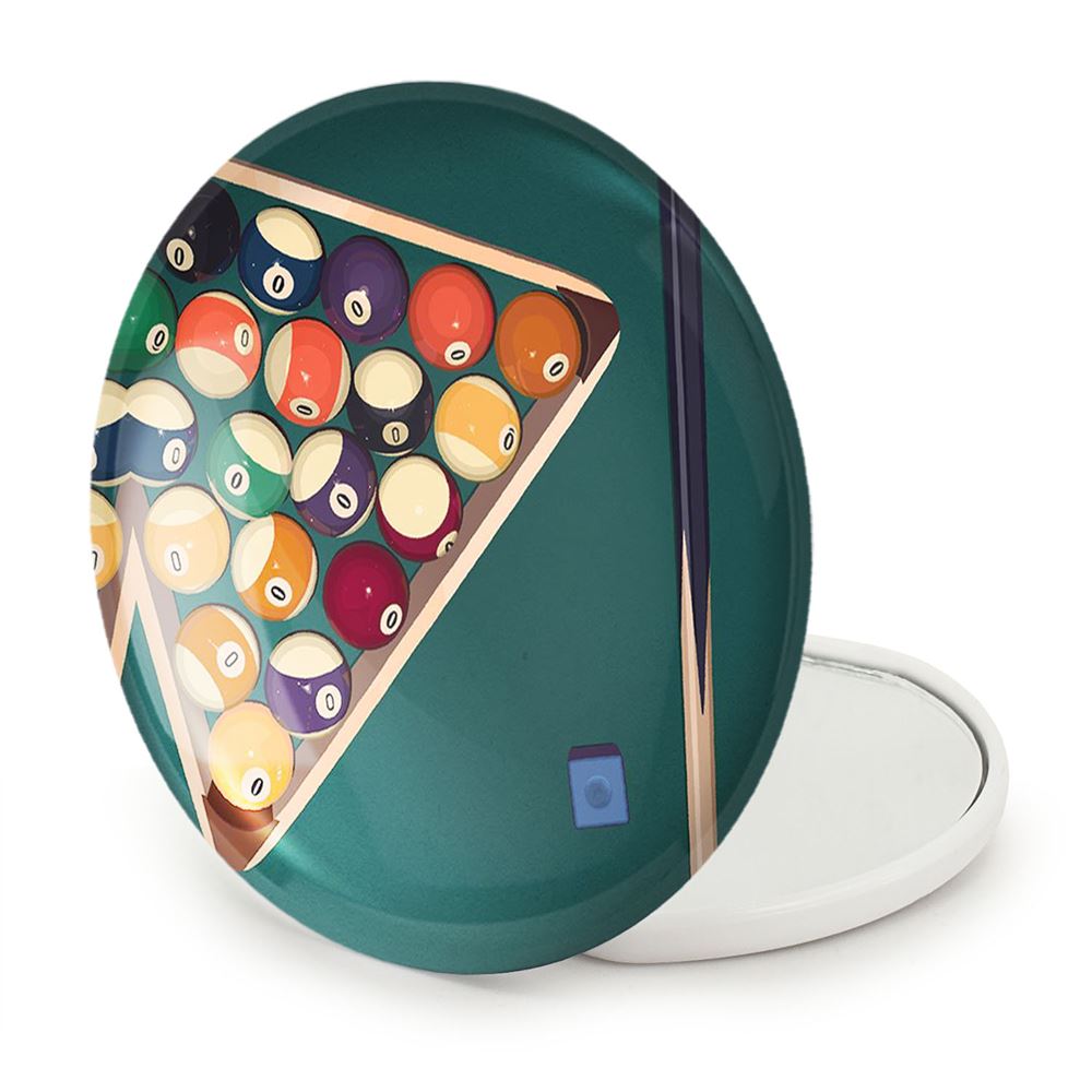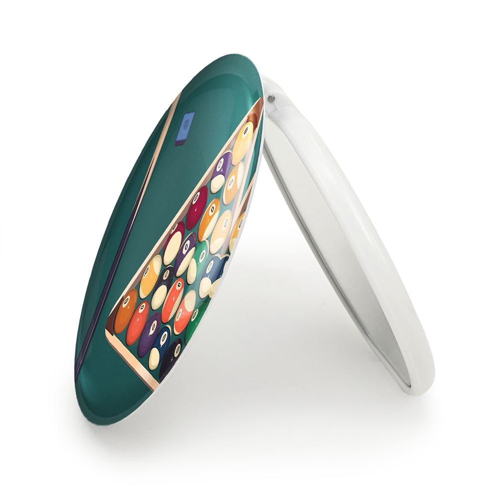 آینه های تاشو بیلیارد Billiard خندالو، از جنس پلاستیک فشرده ABS تولید شده و به رنگ سفید می باشد. یکی از آینه ها ابعاد واقعی را نشان داده و دیگری با قابلیت بزرگنمایی، جزئیات را بهتر نمایش می دهد. ابعاد هر یک از آینه ها، دایره ای به قطر 7.5 سانت می باشد که نه خیلی بزرگ و غیر قابل استفاده در کیف آرایشی ست و نه خیلی کوچک که تصویر خاصی در آن مشاهده نشود. آینه تاشو بیلیارد Billiard سایزی استاندارد و کارآمد دارد و در هر کیفی جا میگیرد. چاپ طرح بوسیله چاپگرهای دیجیتال شش رنگ با شفافیت و کیفیتی مثال زدنی بر روی یک وجه از بدنه ی آینه انجام گرفته و با روکش لمینت حرارتی پوشیده شده که در مقابل آسیب و خط و خش مقاوم بوده و کیفیت بالایی دارد. درب آینه بوسیله قفل بدنه ی آن، باز نمی ماند و کاملا بسته می شود و مناسب قرار گیری در کیف لوازم آرایش و کیف های کوچک دستی نیز هست. آینه های تاشو بیلیارد Billiard خندالو با تنوع طرحی بسیار بالا، سلیقه هر نوع مخاطبی را تامین میکند.