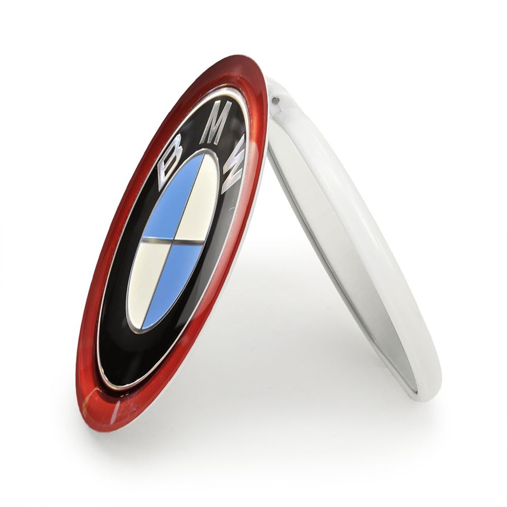 آینه های تاشو بی ام دبلیو BMW خندالو، از جنس پلاستیک فشرده ABS تولید شده و به رنگ سفید می باشد. یکی از آینه ها ابعاد واقعی را نشان داده و دیگری با قابلیت بزرگنمایی، جزئیات را بهتر نمایش می دهد.