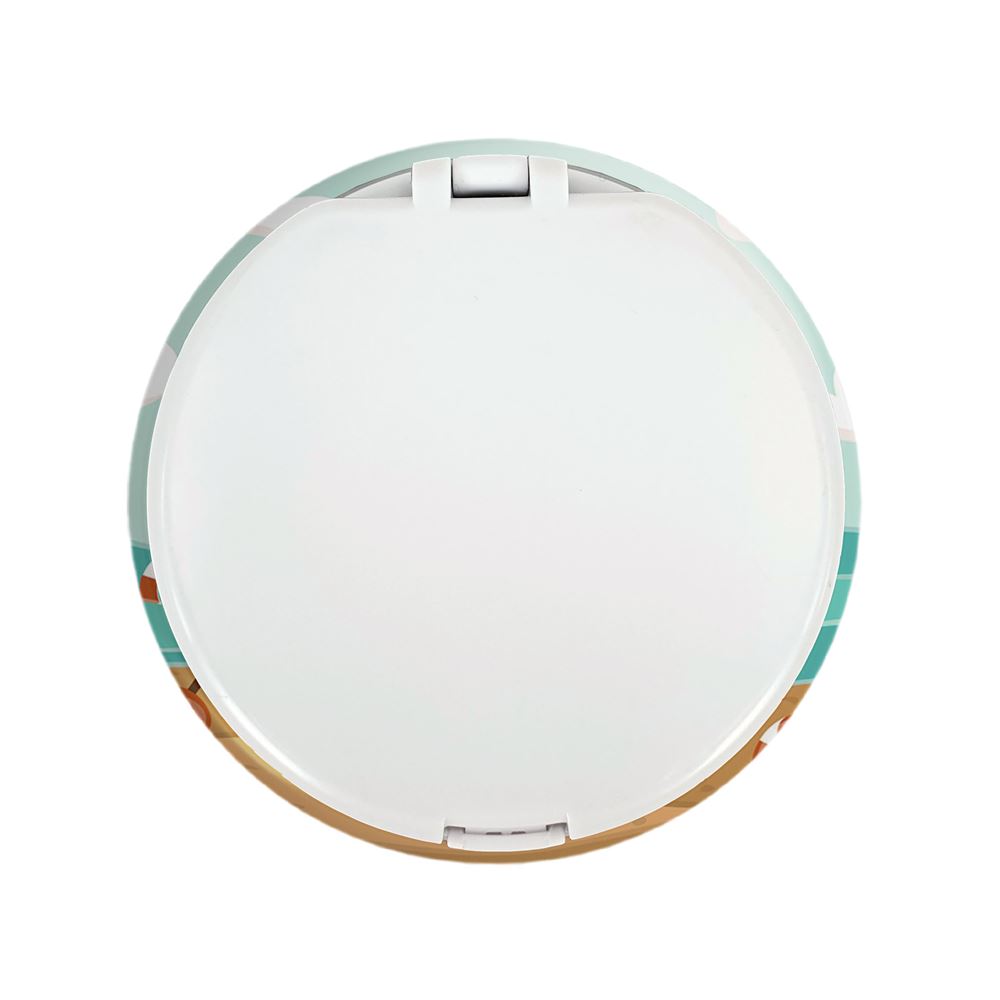 آینه های تاشو تابستان خندالو، از جنس پلاستیک فشرده ABS تولید شده و به رنگ سفید می باشد. یکی از آینه ها ابعاد واقعی را نشان داده و دیگری با قابلیت بزرگنمایی، جزئیات را بهتر نمایش می دهد. ابعاد هر یک از آینه ها، دایره ای به قطر 7.5 سانت می باشد که نه خیلی بزرگ و غیر قابل استفاده در کیف آرایشی ست و نه خیلی کوچک که تصویر خاصی در آن مشاهده نشود. آینه تاشو تابستان سایزی استاندارد و کارآمد دارد و در هر کیفی جا میگیرد. چاپ طرح بوسیله چاپگرهای دیجیتال شش رنگ با شفافیت و کیفیتی مثال زدنی بر روی یک وجه از بدنه ی آینه انجام گرفته و با روکش لمینت حرارتی پوشیده شده که در مقابل آسیب و خط و خش مقاوم بوده و کیفیت بالایی دارد. درب آینه بوسیله قفل بدنه ی آن، باز نمی ماند و کاملا بسته می شود و مناسب قرار گیری در کیف لوازم آرایش و کیف های کوچک دستی نیز هست. آینه های تاشو تابستان خندالو با تنوع طرحی بسیار بالا، سلیقه هر نوع مخاطبی را تامین میکند.
