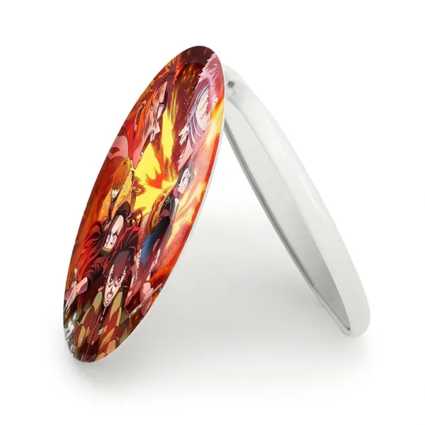 آینه های تاشو تانجیرو و دوستان انیمه شیطان کش خندالو، از جنس پلاستیک فشرده ABS تولید شده و به رنگ سفید می باشد. یکی از آینه ها ابعاد واقعی را نشان داده و دیگری با قابلیت بزرگنمایی، جزئیات را بهتر نمایش می دهد. ابعاد هر یک از آینه ها، دایره ای به قطر 7.5 سانت می باشد که نه خیلی بزرگ و غیر قابل استفاده در کیف آرایشی ست و نه خیلی کوچک که تصویر خاصی در آن مشاهده نشود. آینه تاشو تانجیرو و دوستان انیمه شیطان کش سایزی استاندارد و کارآمد دارد و در هر کیفی جا میگیرد. چاپ طرح بوسیله چاپگرهای دیجیتال شش رنگ با شفافیت و کیفیتی مثال زدنی بر روی یک وجه از بدنه ی آینه انجام گرفته و با روکش لمینت حرارتی پوشیده شده که در مقابل آسیب و خط و خش مقاوم بوده و کیفیت بالایی دارد. درب آینه بوسیله قفل بدنه ی آن، باز نمی ماند و کاملا بسته می شود و مناسب قرار گیری در کیف لوازم آرایش و کیف های کوچک دستی نیز هست. آینه های تاشو تانجیرو و دوستان انیمه شیطان کش خندالو با تنوع طرحی بسیار بالا، سلیقه هر نوع مخاطبی را تامین میکند.