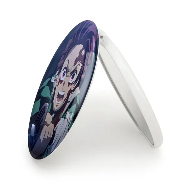 آینه های تاشو تانجیرو کامادو انیمه شیطان کش خندالو، از جنس پلاستیک فشرده ABS تولید شده و به رنگ سفید می باشد. یکی از آینه ها ابعاد واقعی را نشان داده و دیگری با قابلیت بزرگنمایی، جزئیات را بهتر نمایش می دهد. ابعاد هر یک از آینه ها، دایره ای به قطر 7.5 سانت می باشد که نه خیلی بزرگ و غیر قابل استفاده در کیف آرایشی ست و نه خیلی کوچک که تصویر خاصی در آن مشاهده نشود. آینه تاشو تانجیرو کامادو انیمه شیطان کش سایزی استاندارد و کارآمد دارد و در هر کیفی جا میگیرد. چاپ طرح بوسیله چاپگرهای دیجیتال شش رنگ با شفافیت و کیفیتی مثال زدنی بر روی یک وجه از بدنه ی آینه انجام گرفته و با روکش لمینت حرارتی پوشیده شده که در مقابل آسیب و خط و خش مقاوم بوده و کیفیت بالایی دارد. درب آینه بوسیله قفل بدنه ی آن، باز نمی ماند و کاملا بسته می شود و مناسب قرار گیری در کیف لوازم آرایش و کیف های کوچک دستی نیز هست. آینه های تاشو تانجیرو کامادو انیمه شیطان کش خندالو با تنوع طرحی بسیار بالا، سلیقه هر نوع مخاطبی را تامین میکند.