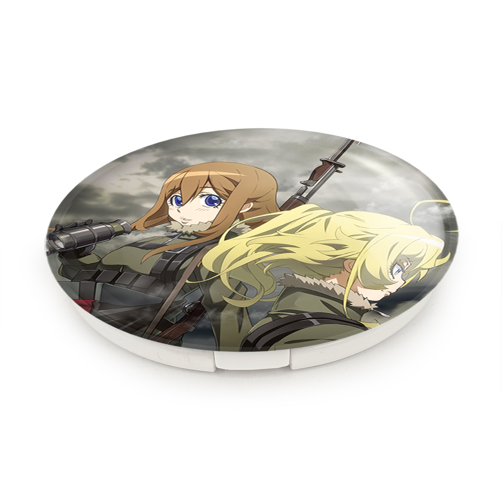 آینه های تاشو تانیا و سربریاکوف انیمه یوجو سنکی خندالو، از جنس پلاستیک فشرده ABS تولید شده و به رنگ سفید می باشد. یکی از آینه ها ابعاد واقعی را نشان داده و دیگری با قابلیت بزرگنمایی، جزئیات را بهتر نمایش می دهد. ابعاد هر یک از آینه ها، دایره ای به قطر 7.5 سانت می باشد که نه خیلی بزرگ و غیر قابل استفاده در کیف آرایشی ست و نه خیلی کوچک که تصویر خاصی در آن مشاهده نشود. آینه تاشو تانیا و سربریاکوف انیمه یوجو سنکی سایزی استاندارد و کارآمد دارد و در هر کیفی جا میگیرد. چاپ طرح بوسیله چاپگرهای دیجیتال شش رنگ با شفافیت و کیفیتی مثال زدنی بر روی یک وجه از بدنه ی آینه انجام گرفته و با روکش لمینت حرارتی پوشیده شده که در مقابل آسیب و خط و خش مقاوم بوده و کیفیت بالایی دارد. درب آینه بوسیله قفل بدنه ی آن، باز نمی ماند و کاملا بسته می شود و مناسب قرار گیری در کیف لوازم آرایش و کیف های کوچک دستی نیز هست. آینه های تاشو تانیا و سربریاکوف انیمه یوجو سنکی خندالو با تنوع طرحی بسیار بالا، سلیقه هر نوع مخاطبی را تامین میکند.