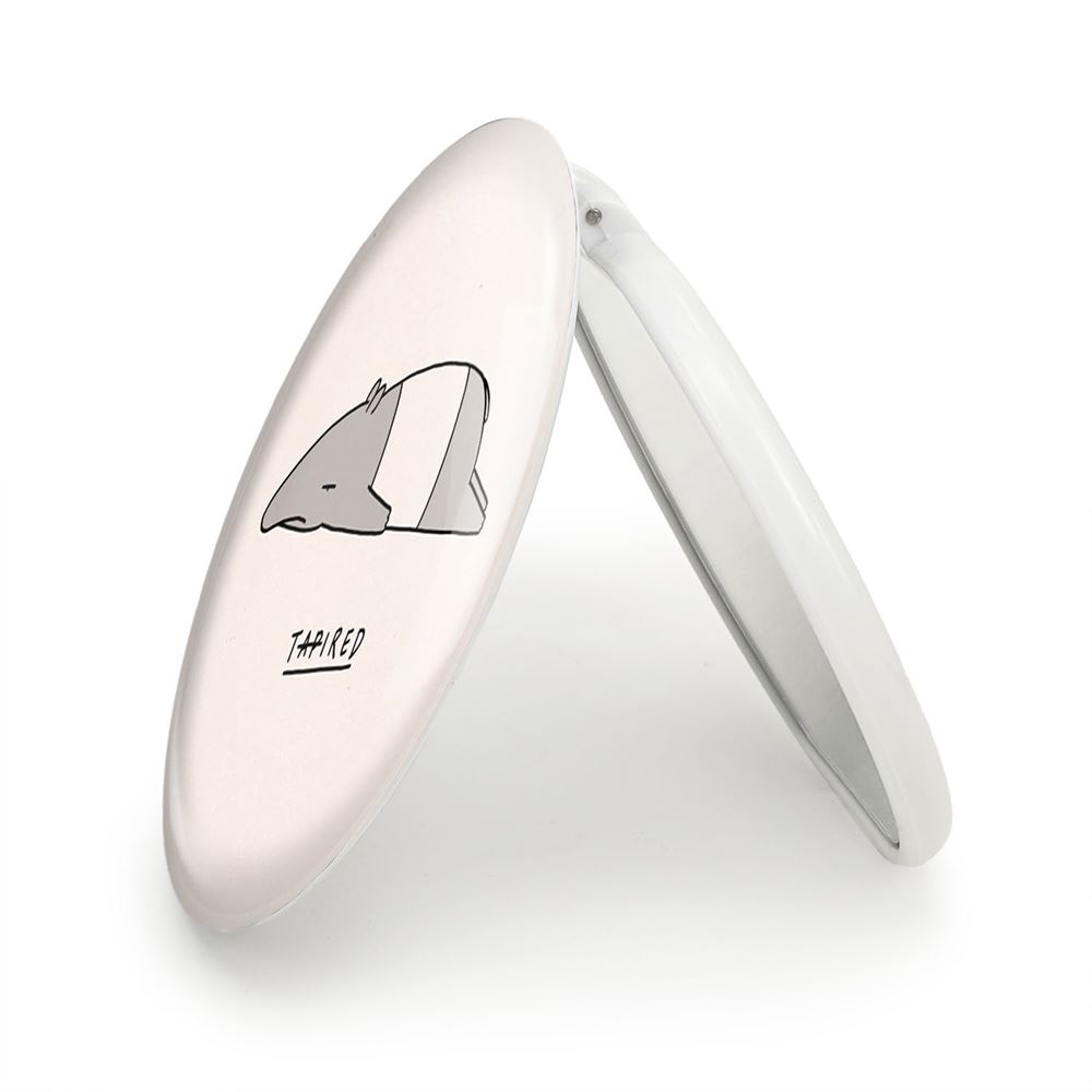 آینه های تاشو تاپیر خندالو، از جنس پلاستیک فشرده ABS تولید شده و به رنگ سفید می باشد. یکی از آینه ها ابعاد واقعی را نشان داده و دیگری با قابلیت بزرگنمایی، جزئیات را بهتر نمایش می دهد. ابعاد هر یک از آینه ها، دایره ای به قطر 7.5 سانت می باشد که نه خیلی بزرگ و غیر قابل استفاده در کیف آرایشی ست و نه خیلی کوچک که تصویر خاصی در آن مشاهده نشود. آینه تاشو تاپیر سایزی استاندارد و کارآمد دارد و در هر کیفی جا میگیرد. چاپ طرح بوسیله چاپگرهای دیجیتال شش رنگ با شفافیت و کیفیتی مثال زدنی بر روی یک وجه از بدنه ی آینه انجام گرفته و با روکش لمینت حرارتی پوشیده شده که در مقابل آسیب و خط و خش مقاوم بوده و کیفیت بالایی دارد. درب آینه بوسیله قفل بدنه ی آن، باز نمی ماند و کاملا بسته می شود و مناسب قرار گیری در کیف لوازم آرایش و کیف های کوچک دستی نیز هست. آینه های تاشو تاپیر خندالو با تنوع طرحی بسیار بالا، سلیقه هر نوع مخاطبی را تامین میکند.