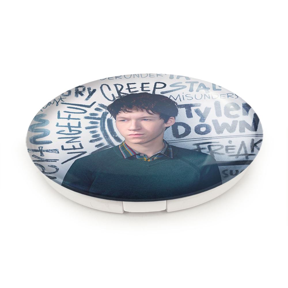 آینه های تاشو تایلر 13دلیل برای اینکه Reasons Why13 خندالو، از جنس پلاستیک فشرده ABS تولید شده و به رنگ سفید می باشد. یکی از آینه ها ابعاد واقعی را نشان داده و دیگری با قابلیت بزرگنمایی، جزئیات را بهتر نمایش می دهد. ابعاد هر یک از آینه ها، دایره ای به قطر 7.5 سانت می باشد که نه خیلی بزرگ و غیر قابل استفاده در کیف آرایشی ست و نه خیلی کوچک که تصویر خاصی در آن مشاهده نشود. آینه تاشو تایلر 13دلیل برای اینکه Reasons Why13 سایزی استاندارد و کارآمد دارد و در هر کیفی جا میگیرد. چاپ طرح بوسیله چاپگرهای دیجیتال شش رنگ با شفافیت و کیفیتی مثال زدنی بر روی یک وجه از بدنه ی آینه انجام گرفته و با روکش لمینت حرارتی پوشیده شده که در مقابل آسیب و خط و خش مقاوم بوده و کیفیت بالایی دارد. درب آینه بوسیله قفل بدنه ی آن، باز نمی ماند و کاملا بسته می شود و مناسب قرار گیری در کیف لوازم آرایش و کیف های کوچک دستی نیز هست. آینه های تاشو تایلر 13دلیل برای اینکه Reasons Why13 خندالو با تنوع طرحی بسیار بالا، سلیقه هر نوع مخاطبی را تامین میکند.