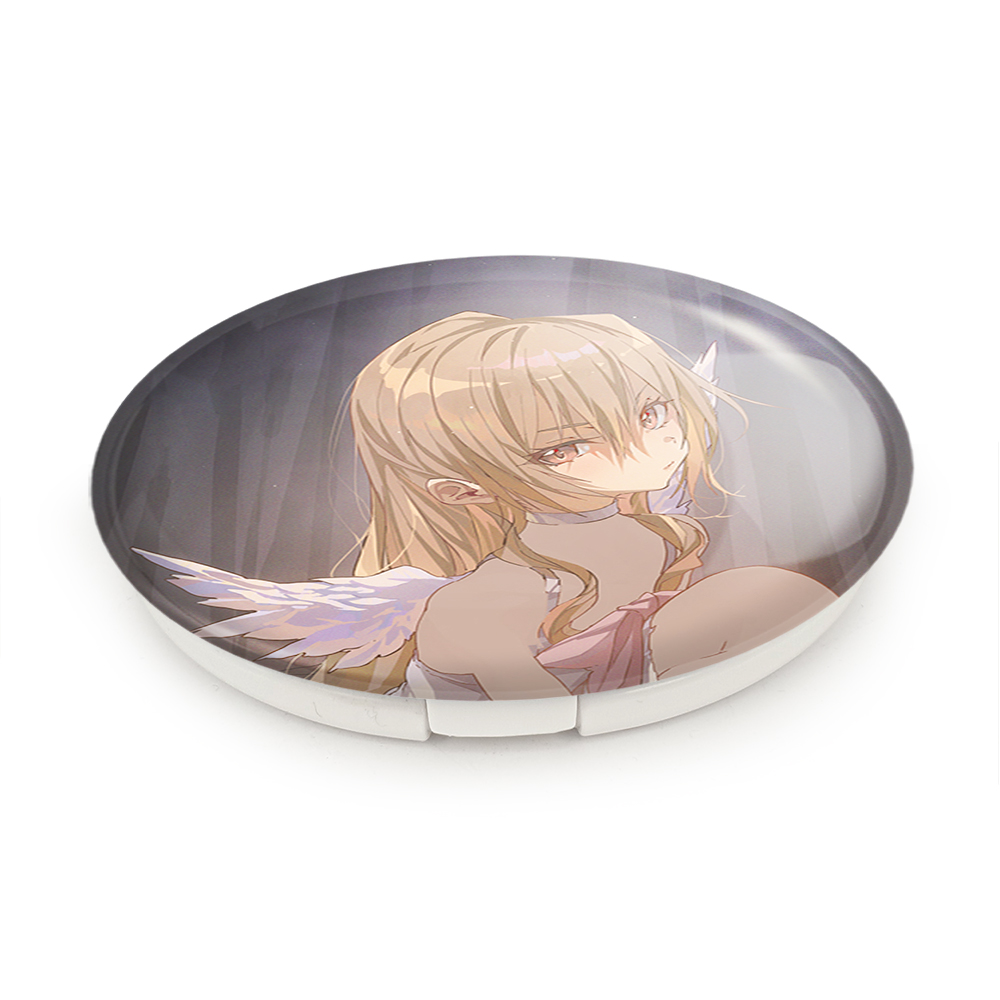 آینه های تاشو تایگا انیمه تورادورا خندالو، از جنس پلاستیک فشرده ABS تولید شده و به رنگ سفید می باشد. یکی از آینه ها ابعاد واقعی را نشان داده و دیگری با قابلیت بزرگنمایی، جزئیات را بهتر نمایش می دهد. ابعاد هر یک از آینه ها، دایره ای به قطر 7.5 سانت می باشد که نه خیلی بزرگ و غیر قابل استفاده در کیف آرایشی ست و نه خیلی کوچک که تصویر خاصی در آن مشاهده نشود. آینه تاشو تایگا انیمه تورادورا سایزی استاندارد و کارآمد دارد و در هر کیفی جا میگیرد. چاپ طرح بوسیله چاپگرهای دیجیتال شش رنگ با شفافیت و کیفیتی مثال زدنی بر روی یک وجه از بدنه ی آینه انجام گرفته و با روکش لمینت حرارتی پوشیده شده که در مقابل آسیب و خط و خش مقاوم بوده و کیفیت بالایی دارد. درب آینه بوسیله قفل بدنه ی آن، باز نمی ماند و کاملا بسته می شود و مناسب قرار گیری در کیف لوازم آرایش و کیف های کوچک دستی نیز هست. آینه های تاشو تایگا انیمه تورادورا خندالو با تنوع طرحی بسیار بالا، سلیقه هر نوع مخاطبی را تامین میکند.