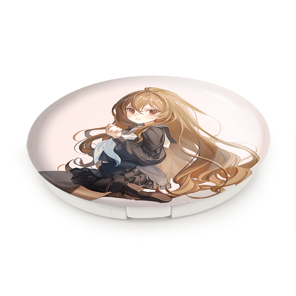 آینه های تاشو تایگا انیمه تورادورا خندالو، از جنس پلاستیک فشرده ABS تولید شده و به رنگ سفید می باشد. یکی از آینه ها ابعاد واقعی را نشان داده و دیگری با قابلیت بزرگنمایی، جزئیات را بهتر نمایش می دهد.