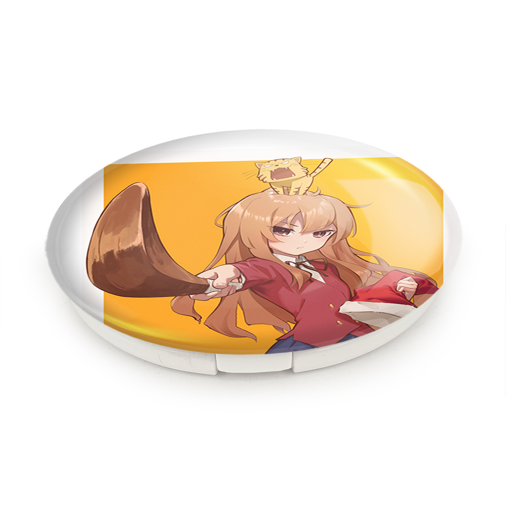 آینه های تاشو تایگا انیمه تورادورا خندالو، از جنس پلاستیک فشرده ABS تولید شده و به رنگ سفید می باشد. یکی از آینه ها ابعاد واقعی را نشان داده و دیگری با قابلیت بزرگنمایی، جزئیات را بهتر نمایش می دهد.