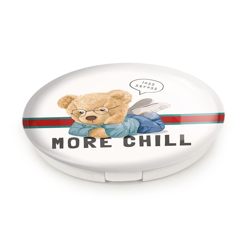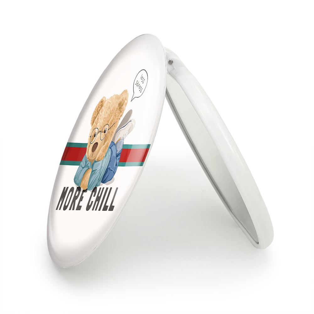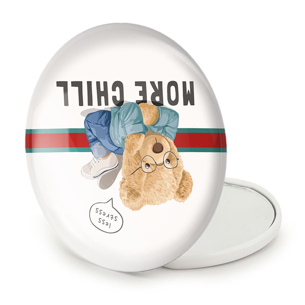 آینه های تاشو تدی Teddy خندالو، از جنس پلاستیک فشرده ABS تولید شده و به رنگ سفید می باشد. یکی از آینه ها ابعاد واقعی را نشان داده و دیگری با قابلیت بزرگنمایی، جزئیات را بهتر نمایش می دهد. ابعاد هر یک از آینه ها، دایره ای به قطر 7.5 سانت می باشد که نه خیلی بزرگ و غیر قابل استفاده در کیف آرایشی ست و نه خیلی کوچک که تصویر خاصی در آن مشاهده نشود. آینه تاشو تدی Teddy سایزی استاندارد و کارآمد دارد و در هر کیفی جا میگیرد. چاپ طرح بوسیله چاپگرهای دیجیتال شش رنگ با شفافیت و کیفیتی مثال زدنی بر روی یک وجه از بدنه ی آینه انجام گرفته و با روکش لمینت حرارتی پوشیده شده که در مقابل آسیب و خط و خش مقاوم بوده و کیفیت بالایی دارد. درب آینه بوسیله قفل بدنه ی آن، باز نمی ماند و کاملا بسته می شود و مناسب قرار گیری در کیف لوازم آرایش و کیف های کوچک دستی نیز هست. آینه های تاشو تدی Teddy خندالو با تنوع طرحی بسیار بالا، سلیقه هر نوع مخاطبی را تامین میکند.