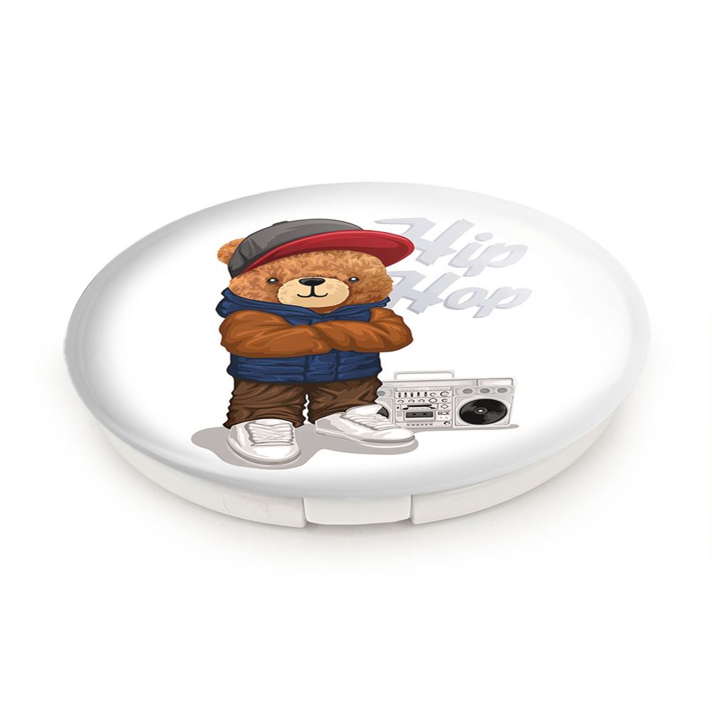 آینه های تاشو تدی Teddy خندالو، از جنس پلاستیک فشرده ABS تولید شده و به رنگ سفید می باشد. یکی از آینه ها ابعاد واقعی را نشان داده و دیگری با قابلیت بزرگنمایی، جزئیات را بهتر نمایش می دهد. ابعاد هر یک از آینه ها، دایره ای به قطر 7.5 سانت می باشد که نه خیلی بزرگ و غیر قابل استفاده در کیف آرایشی ست و نه خیلی کوچک که تصویر خاصی در آن مشاهده نشود. آینه تاشو تدی Teddy سایزی استاندارد و کارآمد دارد و در هر کیفی جا میگیرد. چاپ طرح بوسیله چاپگرهای دیجیتال شش رنگ با شفافیت و کیفیتی مثال زدنی بر روی یک وجه از بدنه ی آینه انجام گرفته و با روکش لمینت حرارتی پوشیده شده که در مقابل آسیب و خط و خش مقاوم بوده و کیفیت بالایی دارد. درب آینه بوسیله قفل بدنه ی آن، باز نمی ماند و کاملا بسته می شود و مناسب قرار گیری در کیف لوازم آرایش و کیف های کوچک دستی نیز هست. آینه های تاشو تدی Teddy خندالو با تنوع طرحی بسیار بالا، سلیقه هر نوع مخاطبی را تامین میکند.