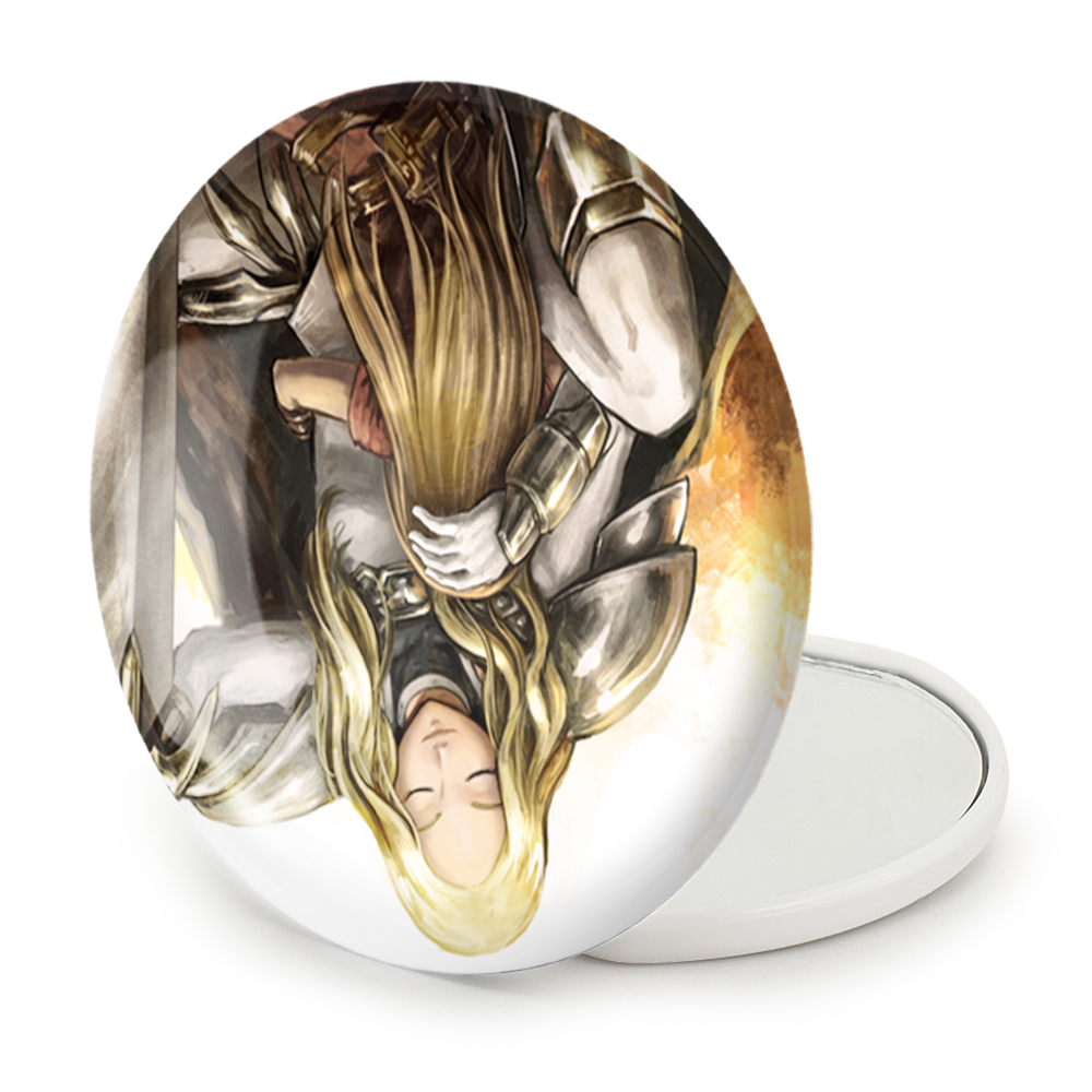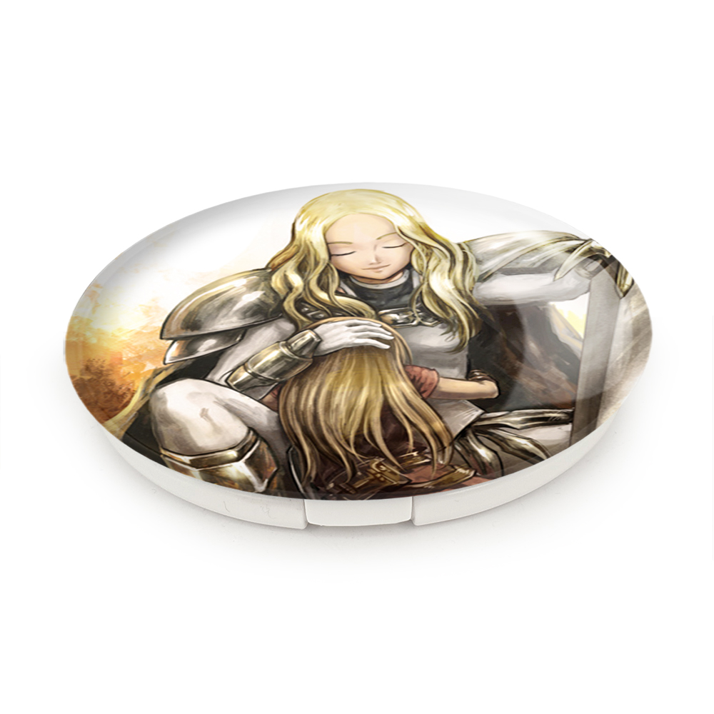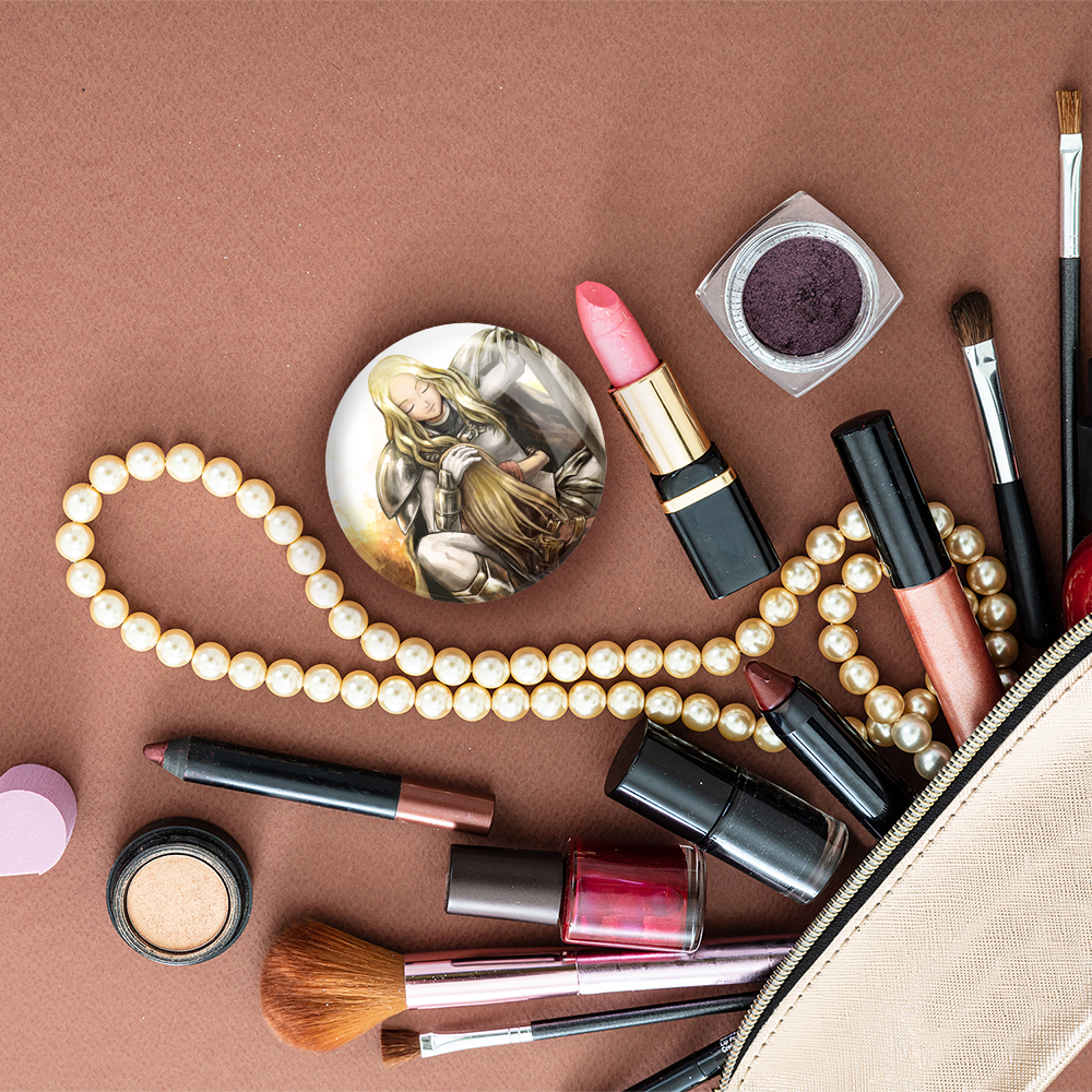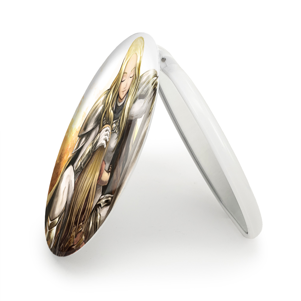 آینه های تاشو ترسا و کلر انیمه کلیمور خندالو، از جنس پلاستیک فشرده ABS تولید شده و به رنگ سفید می باشد. یکی از آینه ها ابعاد واقعی را نشان داده و دیگری با قابلیت بزرگنمایی، جزئیات را بهتر نمایش می دهد. ابعاد هر یک از آینه ها، دایره ای به قطر 7.5 سانت می باشد که نه خیلی بزرگ و غیر قابل استفاده در کیف آرایشی ست و نه خیلی کوچک که تصویر خاصی در آن مشاهده نشود. آینه تاشو ترسا و کلر انیمه کلیمور سایزی استاندارد و کارآمد دارد و در هر کیفی جا میگیرد. چاپ طرح بوسیله چاپگرهای دیجیتال شش رنگ با شفافیت و کیفیتی مثال زدنی بر روی یک وجه از بدنه ی آینه انجام گرفته و با روکش لمینت حرارتی پوشیده شده که در مقابل آسیب و خط و خش مقاوم بوده و کیفیت بالایی دارد. درب آینه بوسیله قفل بدنه ی آن، باز نمی ماند و کاملا بسته می شود و مناسب قرار گیری در کیف لوازم آرایش و کیف های کوچک دستی نیز هست. آینه های تاشو ترسا و کلر انیمه کلیمور خندالو با تنوع طرحی بسیار بالا، سلیقه هر نوع مخاطبی را تامین میکند.