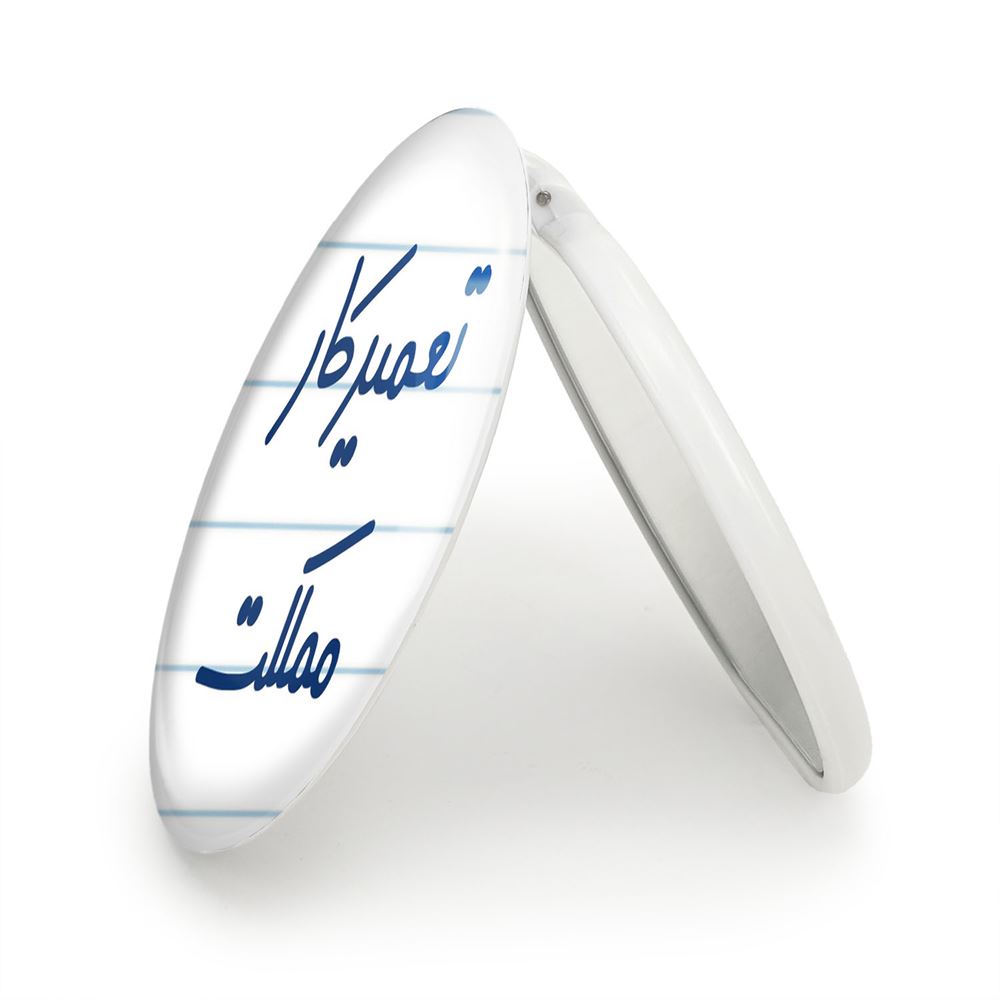 آینه های تاشو تعمیرکار مملکت خندالو، از جنس پلاستیک فشرده ABS تولید شده و به رنگ سفید می باشد. یکی از آینه ها ابعاد واقعی را نشان داده و دیگری با قابلیت بزرگنمایی، جزئیات را بهتر نمایش می دهد. ابعاد هر یک از آینه ها، دایره ای به قطر 7.5 سانت می باشد که نه خیلی بزرگ و غیر قابل استفاده در کیف آرایشی ست و نه خیلی کوچک که تصویر خاصی در آن مشاهده نشود. آینه تاشو تعمیرکار مملکت سایزی استاندارد و کارآمد دارد و در هر کیفی جا میگیرد. چاپ طرح بوسیله چاپگرهای دیجیتال شش رنگ با شفافیت و کیفیتی مثال زدنی بر روی یک وجه از بدنه ی آینه انجام گرفته و با روکش لمینت حرارتی پوشیده شده که در مقابل آسیب و خط و خش مقاوم بوده و کیفیت بالایی دارد. درب آینه بوسیله قفل بدنه ی آن، باز نمی ماند و کاملا بسته می شود و مناسب قرار گیری در کیف لوازم آرایش و کیف های کوچک دستی نیز هست. آینه های تاشو تعمیرکار مملکت خندالو با تنوع طرحی بسیار بالا، سلیقه هر نوع مخاطبی را تامین میکند.