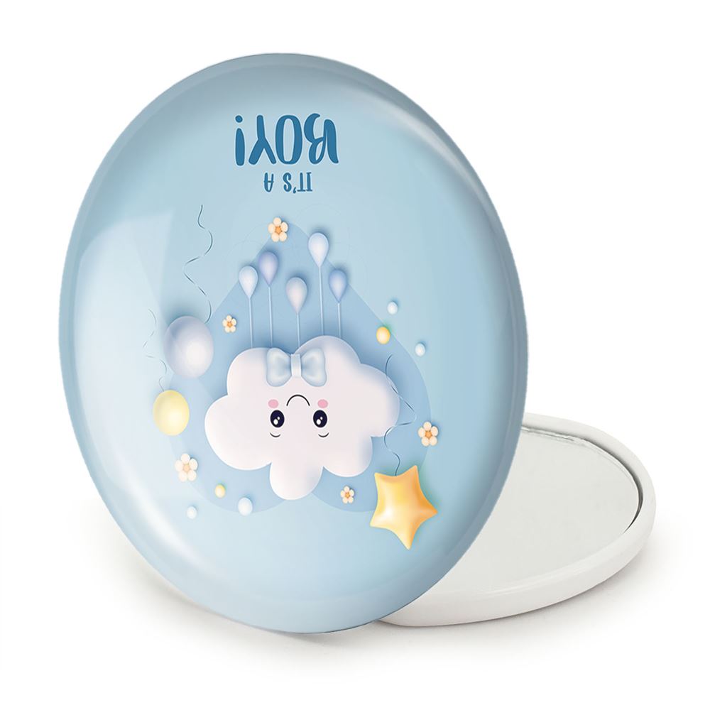 آینه های تاشو تعیین جنسیت خندالو، از جنس پلاستیک فشرده ABS تولید شده و به رنگ سفید می باشد. یکی از آینه ها ابعاد واقعی را نشان داده و دیگری با قابلیت بزرگنمایی، جزئیات را بهتر نمایش می دهد. ابعاد هر یک از آینه ها، دایره ای به قطر 7.5 سانت می باشد که نه خیلی بزرگ و غیر قابل استفاده در کیف آرایشی ست و نه خیلی کوچک که تصویر خاصی در آن مشاهده نشود. آینه تاشو تعیین جنسیت سایزی استاندارد و کارآمد دارد و در هر کیفی جا میگیرد. چاپ طرح بوسیله چاپگرهای دیجیتال شش رنگ با شفافیت و کیفیتی مثال زدنی بر روی یک وجه از بدنه ی آینه انجام گرفته و با روکش لمینت حرارتی پوشیده شده که در مقابل آسیب و خط و خش مقاوم بوده و کیفیت بالایی دارد. درب آینه بوسیله قفل بدنه ی آن، باز نمی ماند و کاملا بسته می شود و مناسب قرار گیری در کیف لوازم آرایش و کیف های کوچک دستی نیز هست. آینه های تاشو تعیین جنسیت خندالو با تنوع طرحی بسیار بالا، سلیقه هر نوع مخاطبی را تامین میکند.