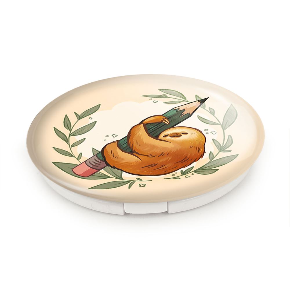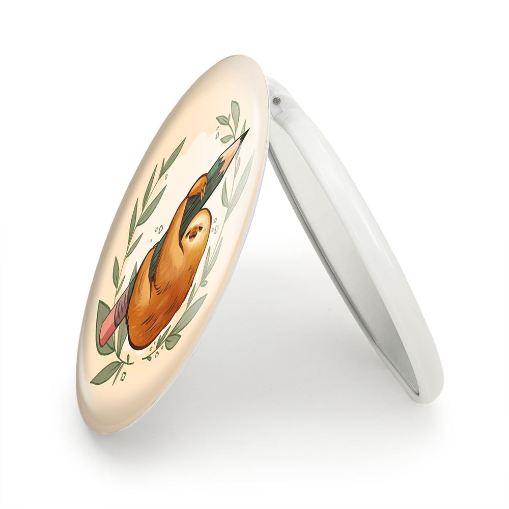 آینه های تاشو تنبل حیوانات بامزه خندالو، از جنس پلاستیک فشرده ABS تولید شده و به رنگ سفید می باشد. یکی از آینه ها ابعاد واقعی را نشان داده و دیگری با قابلیت بزرگنمایی، جزئیات را بهتر نمایش می دهد. ابعاد هر یک از آینه ها، دایره ای به قطر 7.5 سانت می باشد که نه خیلی بزرگ و غیر قابل استفاده در کیف آرایشی ست و نه خیلی کوچک که تصویر خاصی در آن مشاهده نشود. آینه تاشو تنبل حیوانات بامزه سایزی استاندارد و کارآمد دارد و در هر کیفی جا میگیرد. چاپ طرح بوسیله چاپگرهای دیجیتال شش رنگ با شفافیت و کیفیتی مثال زدنی بر روی یک وجه از بدنه ی آینه انجام گرفته و با روکش لمینت حرارتی پوشیده شده که در مقابل آسیب و خط و خش مقاوم بوده و کیفیت بالایی دارد. درب آینه بوسیله قفل بدنه ی آن، باز نمی ماند و کاملا بسته می شود و مناسب قرار گیری در کیف لوازم آرایش و کیف های کوچک دستی نیز هست. آینه های تاشو تنبل حیوانات بامزه خندالو با تنوع طرحی بسیار بالا، سلیقه هر نوع مخاطبی را تامین میکند.