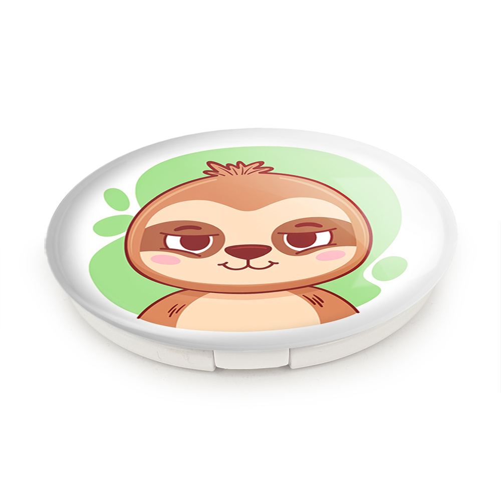 آینه های تاشو تنبل حیوانات بامزه خندالو، از جنس پلاستیک فشرده ABS تولید شده و به رنگ سفید می باشد. یکی از آینه ها ابعاد واقعی را نشان داده و دیگری با قابلیت بزرگنمایی، جزئیات را بهتر نمایش می دهد. ابعاد هر یک از آینه ها، دایره ای به قطر 7.5 سانت می باشد که نه خیلی بزرگ و غیر قابل استفاده در کیف آرایشی ست و نه خیلی کوچک که تصویر خاصی در آن مشاهده نشود. آینه تاشو تنبل حیوانات بامزه سایزی استاندارد و کارآمد دارد و در هر کیفی جا میگیرد. چاپ طرح بوسیله چاپگرهای دیجیتال شش رنگ با شفافیت و کیفیتی مثال زدنی بر روی یک وجه از بدنه ی آینه انجام گرفته و با روکش لمینت حرارتی پوشیده شده که در مقابل آسیب و خط و خش مقاوم بوده و کیفیت بالایی دارد. درب آینه بوسیله قفل بدنه ی آن، باز نمی ماند و کاملا بسته می شود و مناسب قرار گیری در کیف لوازم آرایش و کیف های کوچک دستی نیز هست. آینه های تاشو تنبل حیوانات بامزه خندالو با تنوع طرحی بسیار بالا، سلیقه هر نوع مخاطبی را تامین میکند.