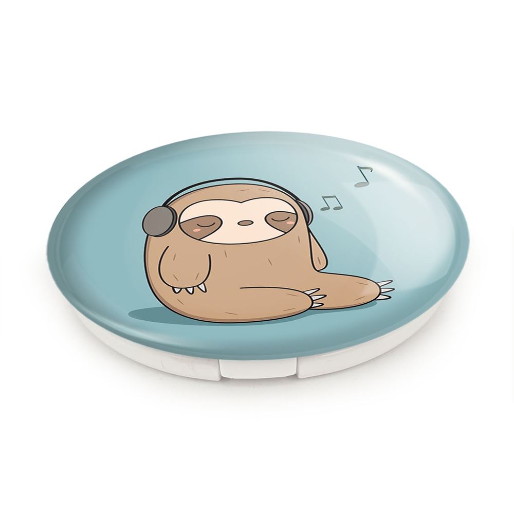 آینه های تاشو تنبل خندالو، از جنس پلاستیک فشرده ABS تولید شده و به رنگ سفید می باشد. یکی از آینه ها ابعاد واقعی را نشان داده و دیگری با قابلیت بزرگنمایی، جزئیات را بهتر نمایش می دهد. ابعاد هر یک از آینه ها، دایره ای به قطر 7.5 سانت می باشد که نه خیلی بزرگ و غیر قابل استفاده در کیف آرایشی ست و نه خیلی کوچک که تصویر خاصی در آن مشاهده نشود. آینه تاشو تنبل سایزی استاندارد و کارآمد دارد و در هر کیفی جا میگیرد. چاپ طرح بوسیله چاپگرهای دیجیتال شش رنگ با شفافیت و کیفیتی مثال زدنی بر روی یک وجه از بدنه ی آینه انجام گرفته و با روکش لمینت حرارتی پوشیده شده که در مقابل آسیب و خط و خش مقاوم بوده و کیفیت بالایی دارد. درب آینه بوسیله قفل بدنه ی آن، باز نمی ماند و کاملا بسته می شود و مناسب قرار گیری در کیف لوازم آرایش و کیف های کوچک دستی نیز هست. آینه های تاشو تنبل خندالو با تنوع طرحی بسیار بالا، سلیقه هر نوع مخاطبی را تامین میکند.