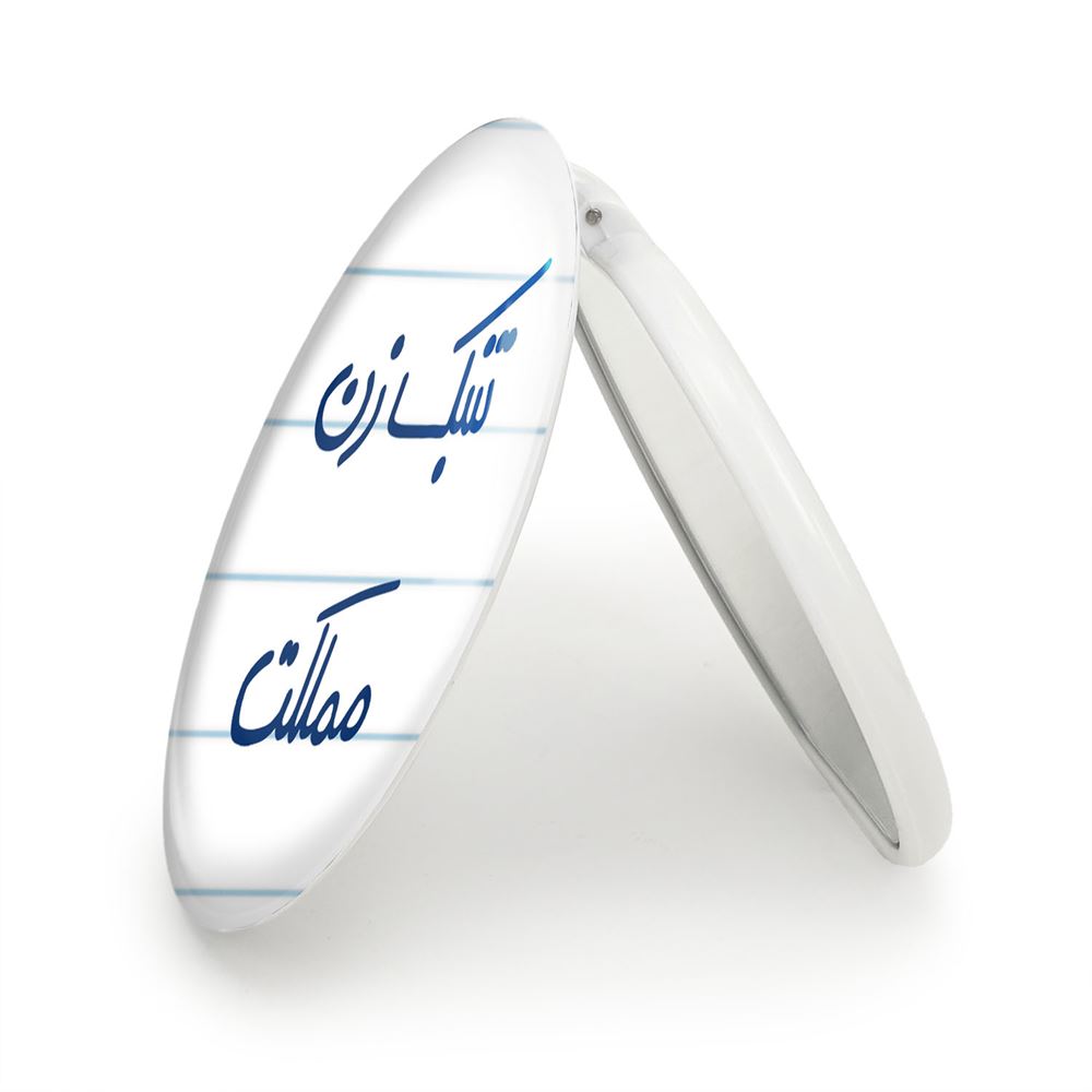 آینه های تاشو تنبک زن مملکت خندالو، از جنس پلاستیک فشرده ABS تولید شده و به رنگ سفید می باشد. یکی از آینه ها ابعاد واقعی را نشان داده و دیگری با قابلیت بزرگنمایی، جزئیات را بهتر نمایش می دهد. ابعاد هر یک از آینه ها، دایره ای به قطر 7.5 سانت می باشد که نه خیلی بزرگ و غیر قابل استفاده در کیف آرایشی ست و نه خیلی کوچک که تصویر خاصی در آن مشاهده نشود. آینه تاشو تنبک زن مملکت سایزی استاندارد و کارآمد دارد و در هر کیفی جا میگیرد. چاپ طرح بوسیله چاپگرهای دیجیتال شش رنگ با شفافیت و کیفیتی مثال زدنی بر روی یک وجه از بدنه ی آینه انجام گرفته و با روکش لمینت حرارتی پوشیده شده که در مقابل آسیب و خط و خش مقاوم بوده و کیفیت بالایی دارد. درب آینه بوسیله قفل بدنه ی آن، باز نمی ماند و کاملا بسته می شود و مناسب قرار گیری در کیف لوازم آرایش و کیف های کوچک دستی نیز هست. آینه های تاشو تنبک زن مملکت خندالو با تنوع طرحی بسیار بالا، سلیقه هر نوع مخاطبی را تامین میکند.