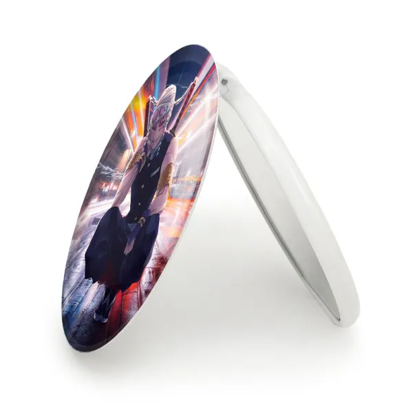 آینه های تاشو تنگن اوزوی انیمه شیطان کش خندالو، از جنس پلاستیک فشرده ABS تولید شده و به رنگ سفید می باشد. یکی از آینه ها ابعاد واقعی را نشان داده و دیگری با قابلیت بزرگنمایی، جزئیات را بهتر نمایش می دهد. ابعاد هر یک از آینه ها، دایره ای به قطر 7.5 سانت می باشد که نه خیلی بزرگ و غیر قابل استفاده در کیف آرایشی ست و نه خیلی کوچک که تصویر خاصی در آن مشاهده نشود. آینه تاشو تنگن اوزوی انیمه شیطان کش سایزی استاندارد و کارآمد دارد و در هر کیفی جا میگیرد. چاپ طرح بوسیله چاپگرهای دیجیتال شش رنگ با شفافیت و کیفیتی مثال زدنی بر روی یک وجه از بدنه ی آینه انجام گرفته و با روکش لمینت حرارتی پوشیده شده که در مقابل آسیب و خط و خش مقاوم بوده و کیفیت بالایی دارد. درب آینه بوسیله قفل بدنه ی آن، باز نمی ماند و کاملا بسته می شود و مناسب قرار گیری در کیف لوازم آرایش و کیف های کوچک دستی نیز هست. آینه های تاشو تنگن اوزوی انیمه شیطان کش خندالو با تنوع طرحی بسیار بالا، سلیقه هر نوع مخاطبی را تامین میکند.