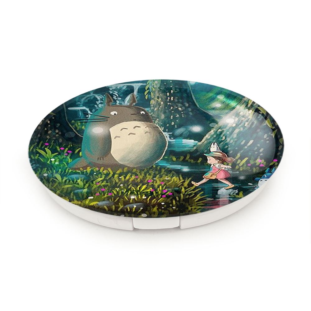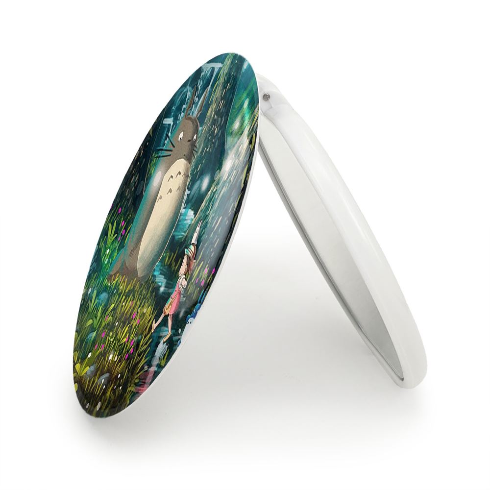 آینه های تاشو توتورو و می انیمه توتورو Totoro خندالو، از جنس پلاستیک فشرده ABS تولید شده و به رنگ سفید می باشد. یکی از آینه ها ابعاد واقعی را نشان داده و دیگری با قابلیت بزرگنمایی، جزئیات را بهتر نمایش می دهد. ابعاد هر یک از آینه ها، دایره ای به قطر 7.5 سانت می باشد که نه خیلی بزرگ و غیر قابل استفاده در کیف آرایشی ست و نه خیلی کوچک که تصویر خاصی در آن مشاهده نشود. آینه تاشو توتورو و می انیمه توتورو Totoro سایزی استاندارد و کارآمد دارد و در هر کیفی جا میگیرد. چاپ طرح بوسیله چاپگرهای دیجیتال شش رنگ با شفافیت و کیفیتی مثال زدنی بر روی یک وجه از بدنه ی آینه انجام گرفته و با روکش لمینت حرارتی پوشیده شده که در مقابل آسیب و خط و خش مقاوم بوده و کیفیت بالایی دارد. درب آینه بوسیله قفل بدنه ی آن، باز نمی ماند و کاملا بسته می شود و مناسب قرار گیری در کیف لوازم آرایش و کیف های کوچک دستی نیز هست. آینه های تاشو توتورو و می انیمه توتورو Totoro خندالو با تنوع طرحی بسیار بالا، سلیقه هر نوع مخاطبی را تامین میکند.