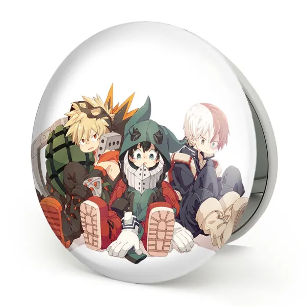 آینه های تاشو تودروکی و دکو و باکوگو انیمه آکادمی قهرمان من خندالو، از جنس پلاستیک فشرده ABS تولید شده و به رنگ سفید می باشد. یکی از آینه ها ابعاد واقعی را نشان داده و دیگری با قابلیت بزرگنمایی، جزئیات را بهتر نمایش می دهد. ابعاد هر یک از آینه ها، دایره ای به قطر 7.5 سانت می باشد که نه خیلی بزرگ و غیر قابل استفاده در کیف آرایشی ست و نه خیلی کوچک که تصویر خاصی در آن مشاهده نشود. آینه تاشو تودروکی و دکو و باکوگو انیمه آکادمی قهرمان من سایزی استاندارد و کارآمد دارد و در هر کیفی جا میگیرد. چاپ طرح بوسیله چاپگرهای دیجیتال شش رنگ با شفافیت و کیفیتی مثال زدنی بر روی یک وجه از بدنه ی آینه انجام گرفته و با روکش لمینت حرارتی پوشیده شده که در مقابل آسیب و خط و خش مقاوم بوده و کیفیت بالایی دارد. درب آینه بوسیله قفل بدنه ی آن، باز نمی ماند و کاملا بسته می شود و مناسب قرار گیری در کیف لوازم آرایش و کیف های کوچک دستی نیز هست. آینه های تاشو تودروکی و دکو و باکوگو انیمه آکادمی قهرمان من خندالو با تنوع طرحی بسیار بالا، سلیقه هر نوع مخاطبی را تامین میکند.