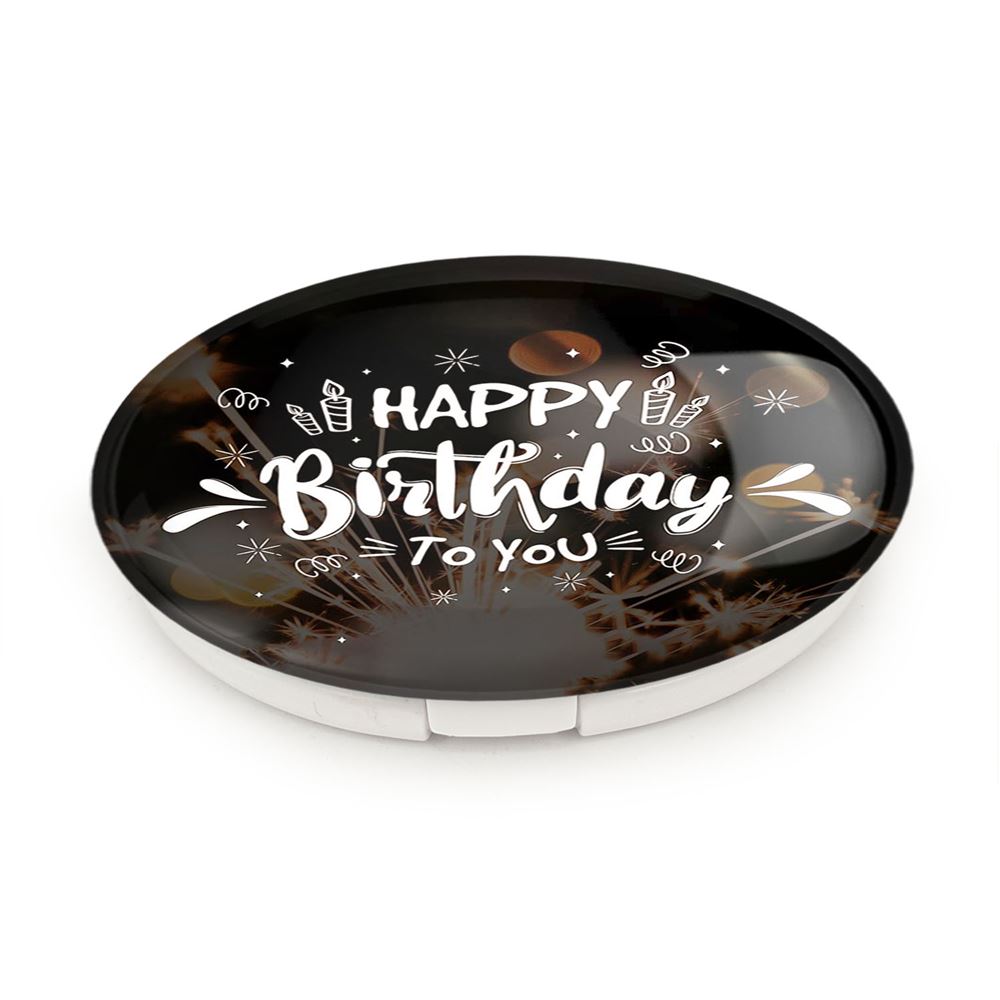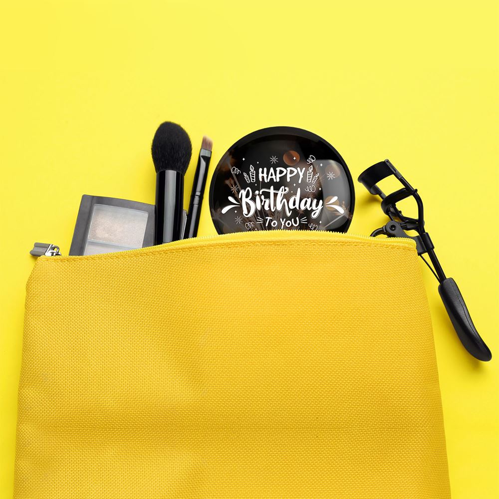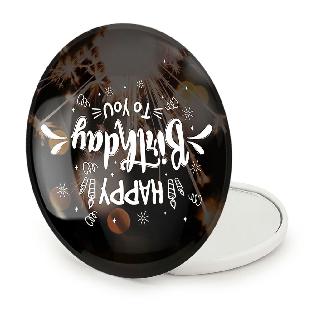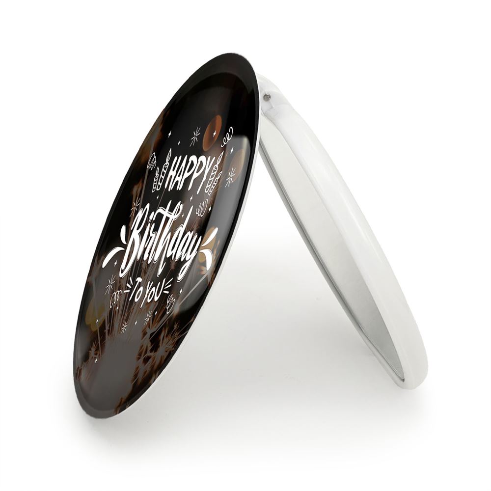آینه های تاشو تولد خندالو، از جنس پلاستیک فشرده ABS تولید شده و به رنگ سفید می باشد. یکی از آینه ها ابعاد واقعی را نشان داده و دیگری با قابلیت بزرگنمایی، جزئیات را بهتر نمایش می دهد. ابعاد هر یک از آینه ها، دایره ای به قطر 7.5 سانت می باشد که نه خیلی بزرگ و غیر قابل استفاده در کیف آرایشی ست و نه خیلی کوچک که تصویر خاصی در آن مشاهده نشود. آینه تاشو تولد سایزی استاندارد و کارآمد دارد و در هر کیفی جا میگیرد. چاپ طرح بوسیله چاپگرهای دیجیتال شش رنگ با شفافیت و کیفیتی مثال زدنی بر روی یک وجه از بدنه ی آینه انجام گرفته و با روکش لمینت حرارتی پوشیده شده که در مقابل آسیب و خط و خش مقاوم بوده و کیفیت بالایی دارد. درب آینه بوسیله قفل بدنه ی آن، باز نمی ماند و کاملا بسته می شود و مناسب قرار گیری در کیف لوازم آرایش و کیف های کوچک دستی نیز هست. آینه های تاشو تولد خندالو با تنوع طرحی بسیار بالا، سلیقه هر نوع مخاطبی را تامین میکند.