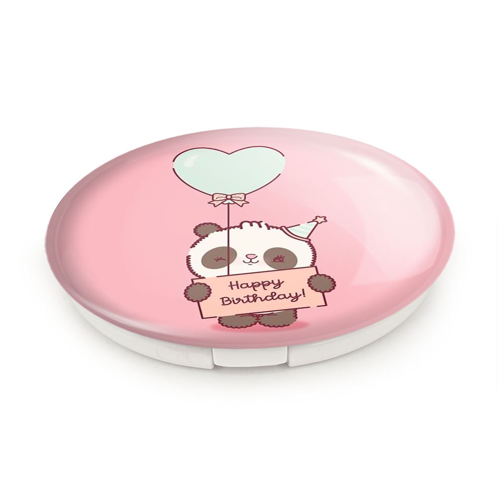 آینه های تاشو تولد خندالو، از جنس پلاستیک فشرده ABS تولید شده و به رنگ سفید می باشد. یکی از آینه ها ابعاد واقعی را نشان داده و دیگری با قابلیت بزرگنمایی، جزئیات را بهتر نمایش می دهد. ابعاد هر یک از آینه ها، دایره ای به قطر 7.5 سانت می باشد که نه خیلی بزرگ و غیر قابل استفاده در کیف آرایشی ست و نه خیلی کوچک که تصویر خاصی در آن مشاهده نشود. آینه تاشو تولد سایزی استاندارد و کارآمد دارد و در هر کیفی جا میگیرد. چاپ طرح بوسیله چاپگرهای دیجیتال شش رنگ با شفافیت و کیفیتی مثال زدنی بر روی یک وجه از بدنه ی آینه انجام گرفته و با روکش لمینت حرارتی پوشیده شده که در مقابل آسیب و خط و خش مقاوم بوده و کیفیت بالایی دارد. درب آینه بوسیله قفل بدنه ی آن، باز نمی ماند و کاملا بسته می شود و مناسب قرار گیری در کیف لوازم آرایش و کیف های کوچک دستی نیز هست. آینه های تاشو تولد خندالو با تنوع طرحی بسیار بالا، سلیقه هر نوع مخاطبی را تامین میکند.