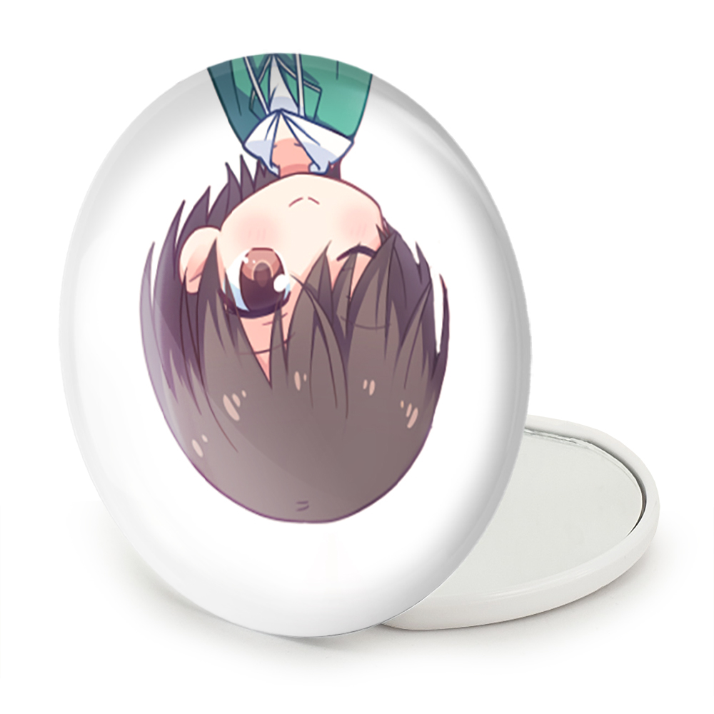 آینه های تاشو توموری و یو انیمه شارلوت خندالو، از جنس پلاستیک فشرده ABS تولید شده و به رنگ سفید می باشد. یکی از آینه ها ابعاد واقعی را نشان داده و دیگری با قابلیت بزرگنمایی، جزئیات را بهتر نمایش می دهد. ابعاد هر یک از آینه ها، دایره ای به قطر 7.5 سانت می باشد که نه خیلی بزرگ و غیر قابل استفاده در کیف آرایشی ست و نه خیلی کوچک که تصویر خاصی در آن مشاهده نشود. آینه تاشو توموری و یو انیمه شارلوت سایزی استاندارد و کارآمد دارد و در هر کیفی جا میگیرد. چاپ طرح بوسیله چاپگرهای دیجیتال شش رنگ با شفافیت و کیفیتی مثال زدنی بر روی یک وجه از بدنه ی آینه انجام گرفته و با روکش لمینت حرارتی پوشیده شده که در مقابل آسیب و خط و خش مقاوم بوده و کیفیت بالایی دارد. درب آینه بوسیله قفل بدنه ی آن، باز نمی ماند و کاملا بسته می شود و مناسب قرار گیری در کیف لوازم آرایش و کیف های کوچک دستی نیز هست. آینه های تاشو توموری و یو انیمه شارلوت خندالو با تنوع طرحی بسیار بالا، سلیقه هر نوع مخاطبی را تامین میکند.