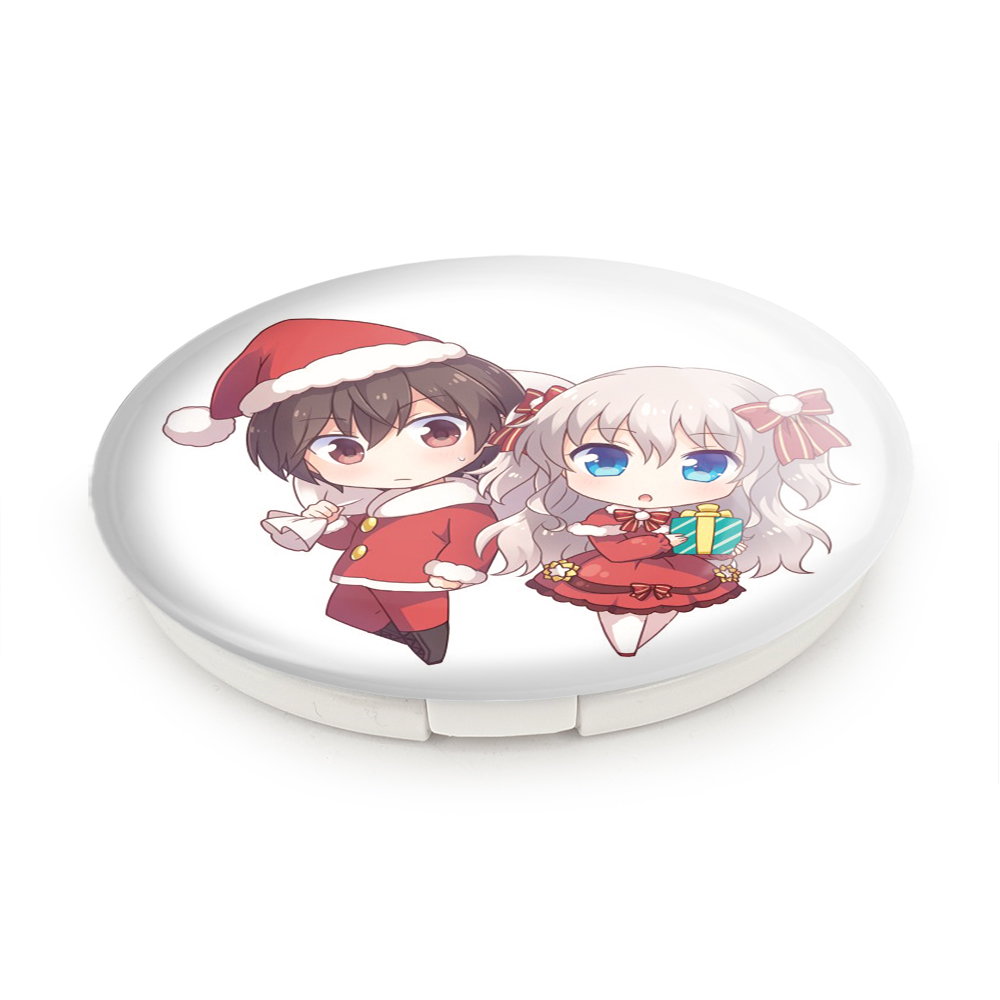 آینه های تاشو توموری و یو انیمه شارلوت خندالو، از جنس پلاستیک فشرده ABS تولید شده و به رنگ سفید می باشد. یکی از آینه ها ابعاد واقعی را نشان داده و دیگری با قابلیت بزرگنمایی، جزئیات را بهتر نمایش می دهد. ابعاد هر یک از آینه ها، دایره ای به قطر 7.5 سانت می باشد که نه خیلی بزرگ و غیر قابل استفاده در کیف آرایشی ست و نه خیلی کوچک که تصویر خاصی در آن مشاهده نشود. آینه تاشو توموری و یو انیمه شارلوت سایزی استاندارد و کارآمد دارد و در هر کیفی جا میگیرد. چاپ طرح بوسیله چاپگرهای دیجیتال شش رنگ با شفافیت و کیفیتی مثال زدنی بر روی یک وجه از بدنه ی آینه انجام گرفته و با روکش لمینت حرارتی پوشیده شده که در مقابل آسیب و خط و خش مقاوم بوده و کیفیت بالایی دارد. درب آینه بوسیله قفل بدنه ی آن، باز نمی ماند و کاملا بسته می شود و مناسب قرار گیری در کیف لوازم آرایش و کیف های کوچک دستی نیز هست. آینه های تاشو توموری و یو انیمه شارلوت خندالو با تنوع طرحی بسیار بالا، سلیقه هر نوع مخاطبی را تامین میکند.