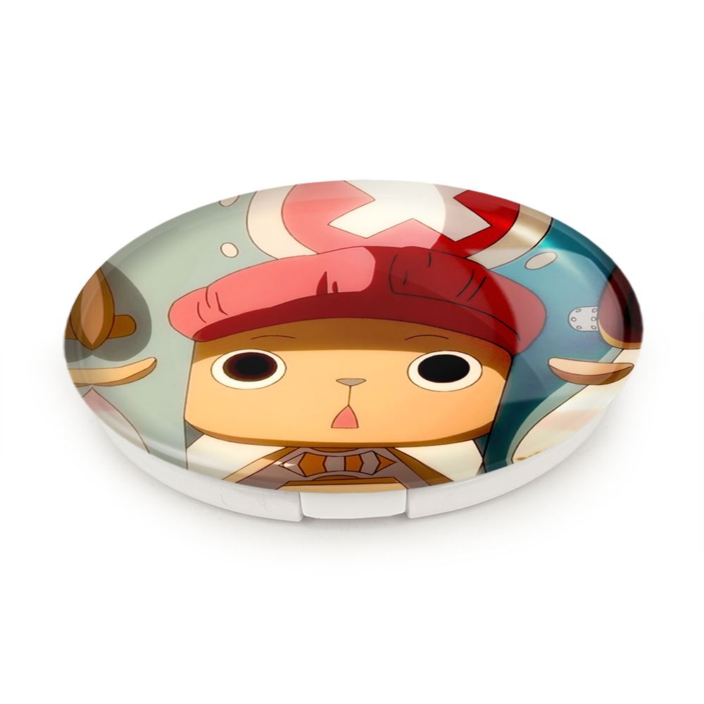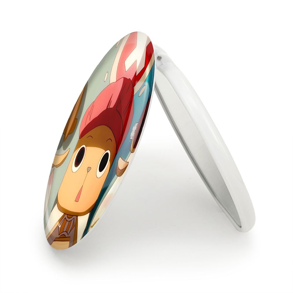 آینه های تاشو تونی تونی انیمه وان پیس One Piece خندالو، از جنس پلاستیک فشرده ABS تولید شده و به رنگ سفید می باشد. یکی از آینه ها ابعاد واقعی را نشان داده و دیگری با قابلیت بزرگنمایی، جزئیات را بهتر نمایش می دهد. ابعاد هر یک از آینه ها، دایره ای به قطر 7.5 سانت می باشد که نه خیلی بزرگ و غیر قابل استفاده در کیف آرایشی ست و نه خیلی کوچک که تصویر خاصی در آن مشاهده نشود. آینه تاشو تونی تونی انیمه وان پیس One Piece سایزی استاندارد و کارآمد دارد و در هر کیفی جا میگیرد. چاپ طرح بوسیله چاپگرهای دیجیتال شش رنگ با شفافیت و کیفیتی مثال زدنی بر روی یک وجه از بدنه ی آینه انجام گرفته و با روکش لمینت حرارتی پوشیده شده که در مقابل آسیب و خط و خش مقاوم بوده و کیفیت بالایی دارد. درب آینه بوسیله قفل بدنه ی آن، باز نمی ماند و کاملا بسته می شود و مناسب قرار گیری در کیف لوازم آرایش و کیف های کوچک دستی نیز هست. آینه های تاشو تونی تونی انیمه وان پیس One Piece خندالو با تنوع طرحی بسیار بالا، سلیقه هر نوع مخاطبی را تامین میکند.