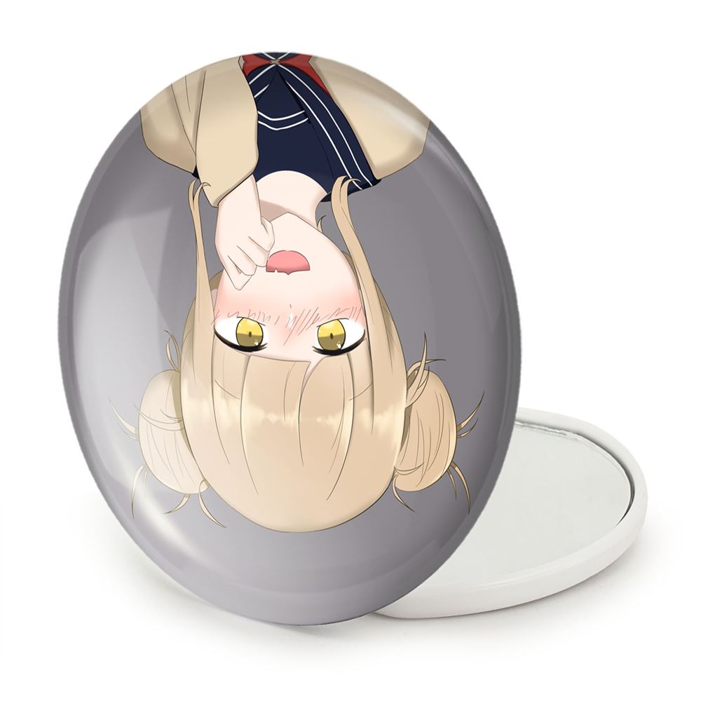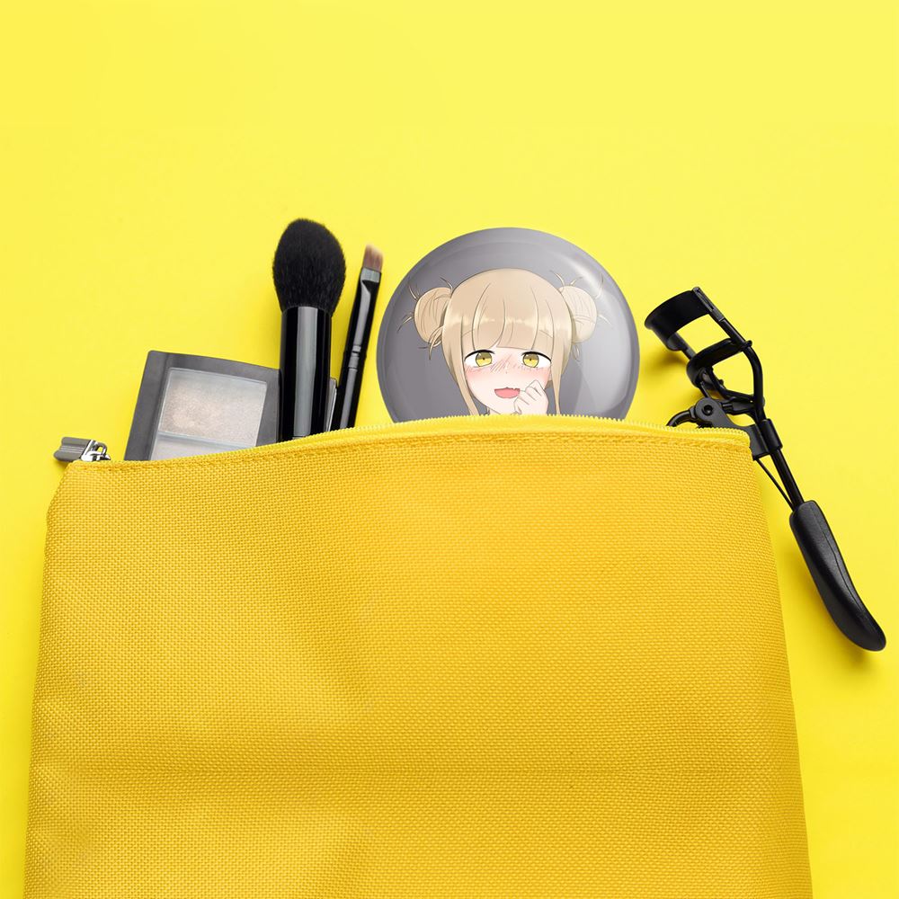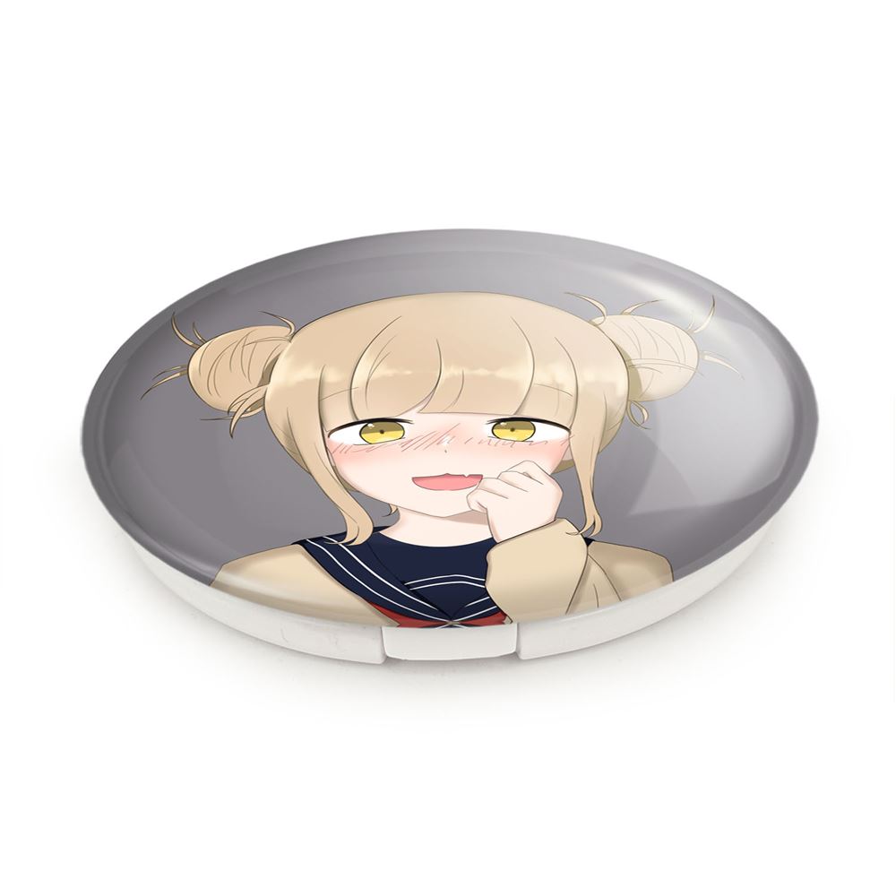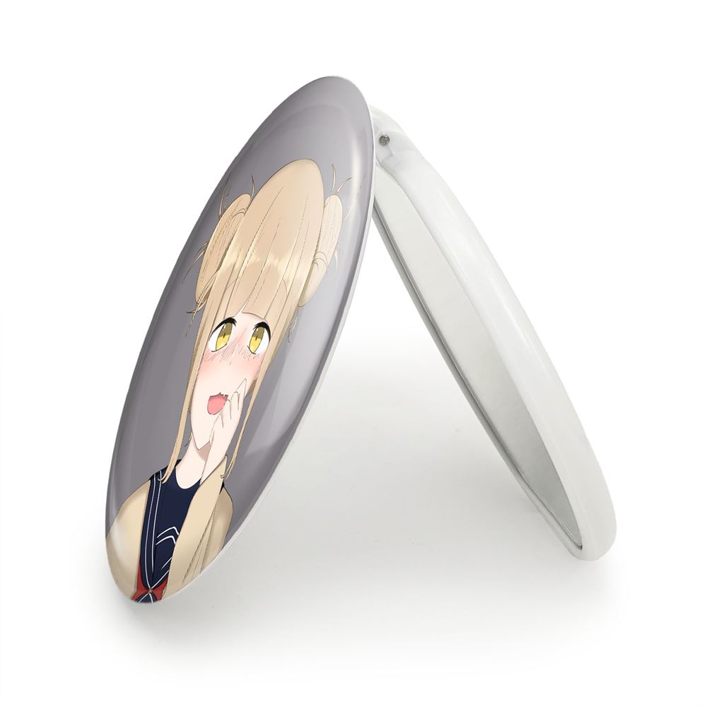 آینه های تاشو توگا هیمیوگا انیمه آکادمی قهرمان من خندالو، از جنس پلاستیک فشرده ABS تولید شده و به رنگ سفید می باشد. یکی از آینه ها ابعاد واقعی را نشان داده و دیگری با قابلیت بزرگنمایی، جزئیات را بهتر نمایش می دهد. ابعاد هر یک از آینه ها، دایره ای به قطر 7.5 سانت می باشد که نه خیلی بزرگ و غیر قابل استفاده در کیف آرایشی ست و نه خیلی کوچک که تصویر خاصی در آن مشاهده نشود. آینه تاشو توگا هیمیوگا انیمه آکادمی قهرمان من سایزی استاندارد و کارآمد دارد و در هر کیفی جا میگیرد. چاپ طرح بوسیله چاپگرهای دیجیتال شش رنگ با شفافیت و کیفیتی مثال زدنی بر روی یک وجه از بدنه ی آینه انجام گرفته و با روکش لمینت حرارتی پوشیده شده که در مقابل آسیب و خط و خش مقاوم بوده و کیفیت بالایی دارد. درب آینه بوسیله قفل بدنه ی آن، باز نمی ماند و کاملا بسته می شود و مناسب قرار گیری در کیف لوازم آرایش و کیف های کوچک دستی نیز هست. آینه های تاشو توگا هیمیوگا انیمه آکادمی قهرمان من خندالو با تنوع طرحی بسیار بالا، سلیقه هر نوع مخاطبی را تامین میکند.