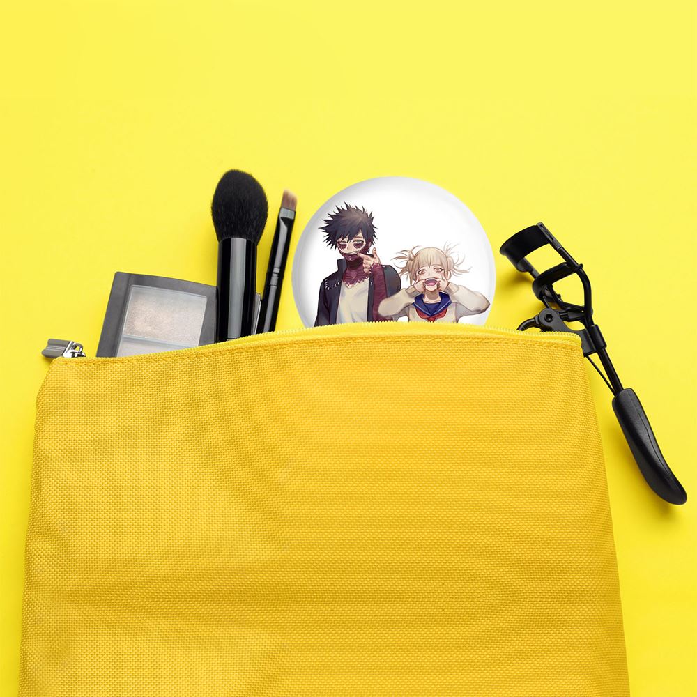 آینه های تاشو توگا و دابی انیمه آکادمی قهرمان من خندالو، از جنس پلاستیک فشرده ABS تولید شده و به رنگ سفید می باشد. یکی از آینه ها ابعاد واقعی را نشان داده و دیگری با قابلیت بزرگنمایی، جزئیات را بهتر نمایش می دهد. ابعاد هر یک از آینه ها، دایره ای به قطر 7.5 سانت می باشد که نه خیلی بزرگ و غیر قابل استفاده در کیف آرایشی ست و نه خیلی کوچک که تصویر خاصی در آن مشاهده نشود. آینه تاشو توگا و دابی انیمه آکادمی قهرمان من سایزی استاندارد و کارآمد دارد و در هر کیفی جا میگیرد. چاپ طرح بوسیله چاپگرهای دیجیتال شش رنگ با شفافیت و کیفیتی مثال زدنی بر روی یک وجه از بدنه ی آینه انجام گرفته و با روکش لمینت حرارتی پوشیده شده که در مقابل آسیب و خط و خش مقاوم بوده و کیفیت بالایی دارد. درب آینه بوسیله قفل بدنه ی آن، باز نمی ماند و کاملا بسته می شود و مناسب قرار گیری در کیف لوازم آرایش و کیف های کوچک دستی نیز هست. آینه های تاشو توگا و دابی انیمه آکادمی قهرمان من خندالو با تنوع طرحی بسیار بالا، سلیقه هر نوع مخاطبی را تامین میکند.