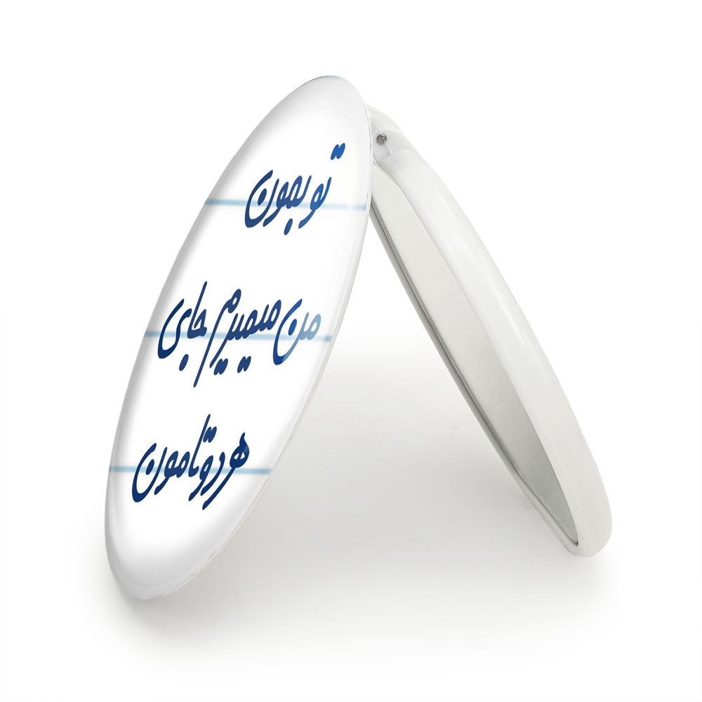 آینه های تاشو تو بمون من میمیرم جای هردوتامون خندالو، از جنس پلاستیک فشرده ABS تولید شده و به رنگ سفید می باشد. یکی از آینه ها ابعاد واقعی را نشان داده و دیگری با قابلیت بزرگنمایی، جزئیات را بهتر نمایش می دهد. ابعاد هر یک از آینه ها، دایره ای به قطر 7.5 سانت می باشد که نه خیلی بزرگ و غیر قابل استفاده در کیف آرایشی ست و نه خیلی کوچک که تصویر خاصی در آن مشاهده نشود. آینه تاشو تو بمون من میمیرم جای هردوتامون سایزی استاندارد و کارآمد دارد و در هر کیفی جا میگیرد. چاپ طرح بوسیله چاپگرهای دیجیتال شش رنگ با شفافیت و کیفیتی مثال زدنی بر روی یک وجه از بدنه ی آینه انجام گرفته و با روکش لمینت حرارتی پوشیده شده که در مقابل آسیب و خط و خش مقاوم بوده و کیفیت بالایی دارد. درب آینه بوسیله قفل بدنه ی آن، باز نمی ماند و کاملا بسته می شود و مناسب قرار گیری در کیف لوازم آرایش و کیف های کوچک دستی نیز هست. آینه های تاشو تو بمون من میمیرم جای هردوتامون خندالو با تنوع طرحی بسیار بالا، سلیقه هر نوع مخاطبی را تامین میکند.