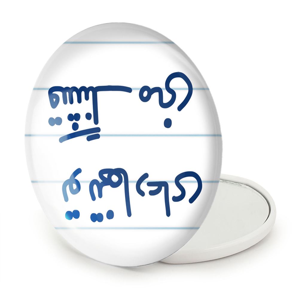 آینه های تاشو تو تنها دعای قشنگ منی خندالو، از جنس پلاستیک فشرده ABS تولید شده و به رنگ سفید می باشد. یکی از آینه ها ابعاد واقعی را نشان داده و دیگری با قابلیت بزرگنمایی، جزئیات را بهتر نمایش می دهد. ابعاد هر یک از آینه ها، دایره ای به قطر 7.5 سانت می باشد که نه خیلی بزرگ و غیر قابل استفاده در کیف آرایشی ست و نه خیلی کوچک که تصویر خاصی در آن مشاهده نشود. آینه تاشو تو تنها دعای قشنگ منی سایزی استاندارد و کارآمد دارد و در هر کیفی جا میگیرد. چاپ طرح بوسیله چاپگرهای دیجیتال شش رنگ با شفافیت و کیفیتی مثال زدنی بر روی یک وجه از بدنه ی آینه انجام گرفته و با روکش لمینت حرارتی پوشیده شده که در مقابل آسیب و خط و خش مقاوم بوده و کیفیت بالایی دارد. درب آینه بوسیله قفل بدنه ی آن، باز نمی ماند و کاملا بسته می شود و مناسب قرار گیری در کیف لوازم آرایش و کیف های کوچک دستی نیز هست. آینه های تاشو تو تنها دعای قشنگ منی خندالو با تنوع طرحی بسیار بالا، سلیقه هر نوع مخاطبی را تامین میکند.