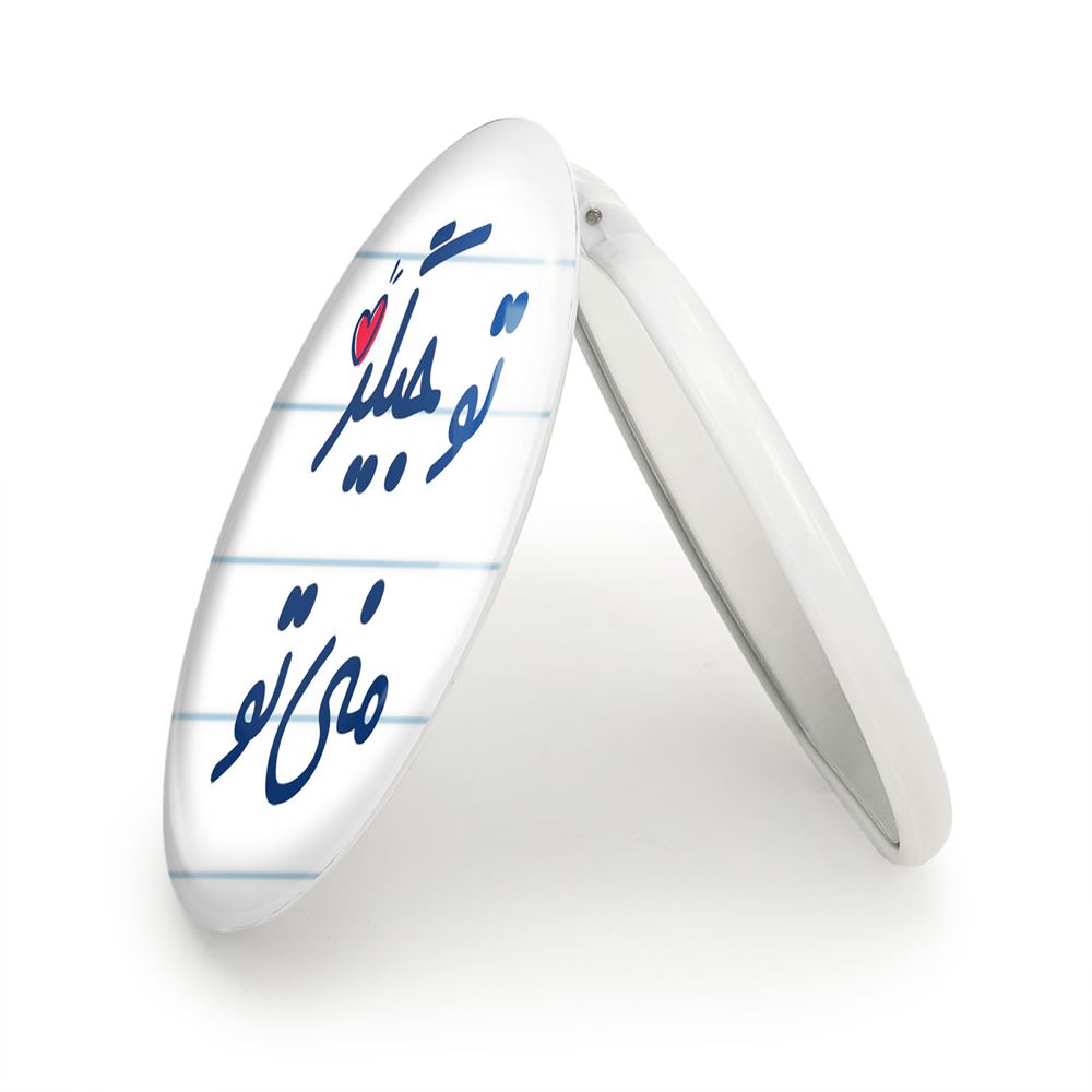 آینه های تاشو تو جیگر منی تو خندالو، از جنس پلاستیک فشرده ABS تولید شده و به رنگ سفید می باشد. یکی از آینه ها ابعاد واقعی را نشان داده و دیگری با قابلیت بزرگنمایی، جزئیات را بهتر نمایش می دهد. ابعاد هر یک از آینه ها، دایره ای به قطر 7.5 سانت می باشد که نه خیلی بزرگ و غیر قابل استفاده در کیف آرایشی ست و نه خیلی کوچک که تصویر خاصی در آن مشاهده نشود. آینه تاشو تو جیگر منی تو سایزی استاندارد و کارآمد دارد و در هر کیفی جا میگیرد. چاپ طرح بوسیله چاپگرهای دیجیتال شش رنگ با شفافیت و کیفیتی مثال زدنی بر روی یک وجه از بدنه ی آینه انجام گرفته و با روکش لمینت حرارتی پوشیده شده که در مقابل آسیب و خط و خش مقاوم بوده و کیفیت بالایی دارد. درب آینه بوسیله قفل بدنه ی آن، باز نمی ماند و کاملا بسته می شود و مناسب قرار گیری در کیف لوازم آرایش و کیف های کوچک دستی نیز هست. آینه های تاشو تو جیگر منی تو خندالو با تنوع طرحی بسیار بالا، سلیقه هر نوع مخاطبی را تامین میکند.