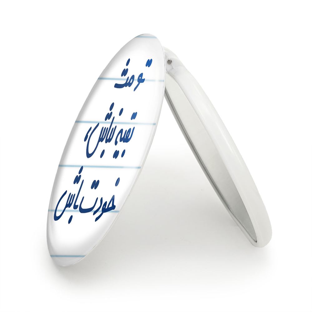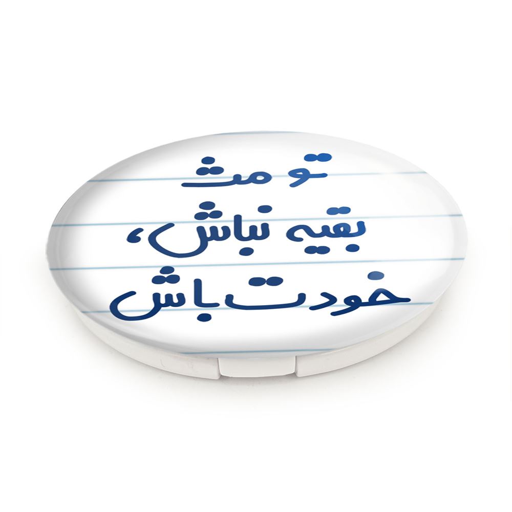 آینه های تاشو تو مث بقیه نباش خودت باش خندالو، از جنس پلاستیک فشرده ABS تولید شده و به رنگ سفید می باشد. یکی از آینه ها ابعاد واقعی را نشان داده و دیگری با قابلیت بزرگنمایی، جزئیات را بهتر نمایش می دهد. ابعاد هر یک از آینه ها، دایره ای به قطر 7.5 سانت می باشد که نه خیلی بزرگ و غیر قابل استفاده در کیف آرایشی ست و نه خیلی کوچک که تصویر خاصی در آن مشاهده نشود. آینه تاشو تو مث بقیه نباش خودت باش سایزی استاندارد و کارآمد دارد و در هر کیفی جا میگیرد. چاپ طرح بوسیله چاپگرهای دیجیتال شش رنگ با شفافیت و کیفیتی مثال زدنی بر روی یک وجه از بدنه ی آینه انجام گرفته و با روکش لمینت حرارتی پوشیده شده که در مقابل آسیب و خط و خش مقاوم بوده و کیفیت بالایی دارد. درب آینه بوسیله قفل بدنه ی آن، باز نمی ماند و کاملا بسته می شود و مناسب قرار گیری در کیف لوازم آرایش و کیف های کوچک دستی نیز هست. آینه های تاشو تو مث بقیه نباش خودت باش خندالو با تنوع طرحی بسیار بالا، سلیقه هر نوع مخاطبی را تامین میکند.