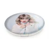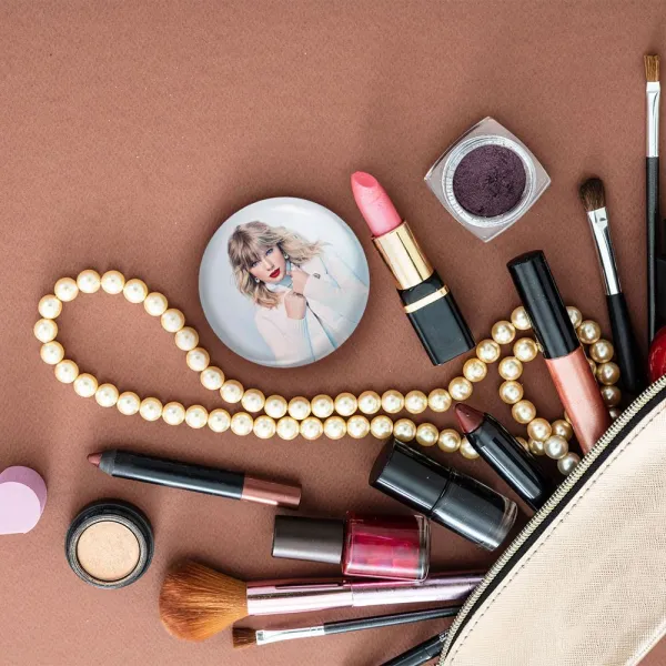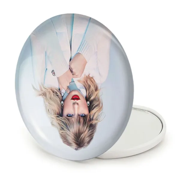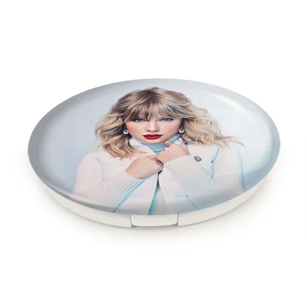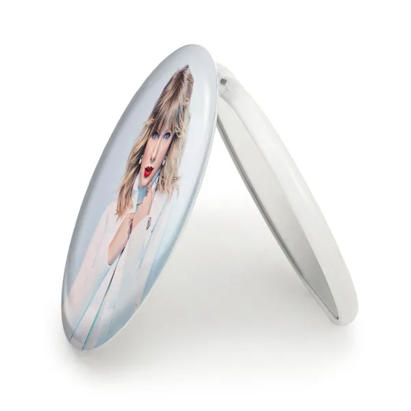 آینه های تاشو تیلور سوئیفت Taylor Swift خندالو، از جنس پلاستیک فشرده ABS تولید شده و به رنگ سفید می باشد. یکی از آینه ها ابعاد واقعی را نشان داده و دیگری با قابلیت بزرگنمایی، جزئیات را بهتر نمایش می دهد. ابعاد هر یک از آینه ها، دایره ای به قطر 7.5 سانت می باشد که نه خیلی بزرگ و غیر قابل استفاده در کیف آرایشی ست و نه خیلی کوچک که تصویر خاصی در آن مشاهده نشود. آینه تاشو تیلور سوئیفت Taylor Swift سایزی استاندارد و کارآمد دارد و در هر کیفی جا میگیرد. چاپ طرح بوسیله چاپگرهای دیجیتال شش رنگ با شفافیت و کیفیتی مثال زدنی بر روی یک وجه از بدنه ی آینه انجام گرفته و با روکش لمینت حرارتی پوشیده شده که در مقابل آسیب و خط و خش مقاوم بوده و کیفیت بالایی دارد. درب آینه بوسیله قفل بدنه ی آن، باز نمی ماند و کاملا بسته می شود و مناسب قرار گیری در کیف لوازم آرایش و کیف های کوچک دستی نیز هست. آینه های تاشو تیلور سوئیفت Taylor Swift خندالو با تنوع طرحی بسیار بالا، سلیقه هر نوع مخاطبی را تامین میکند.