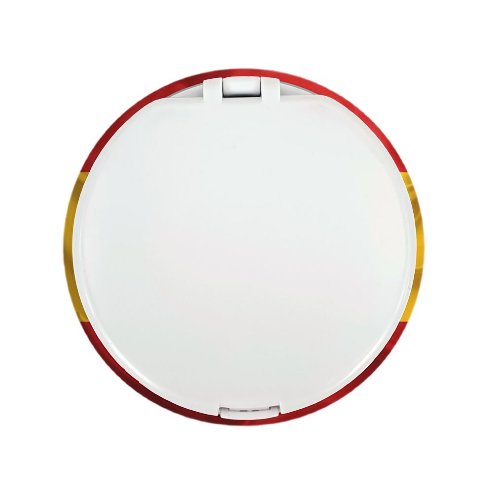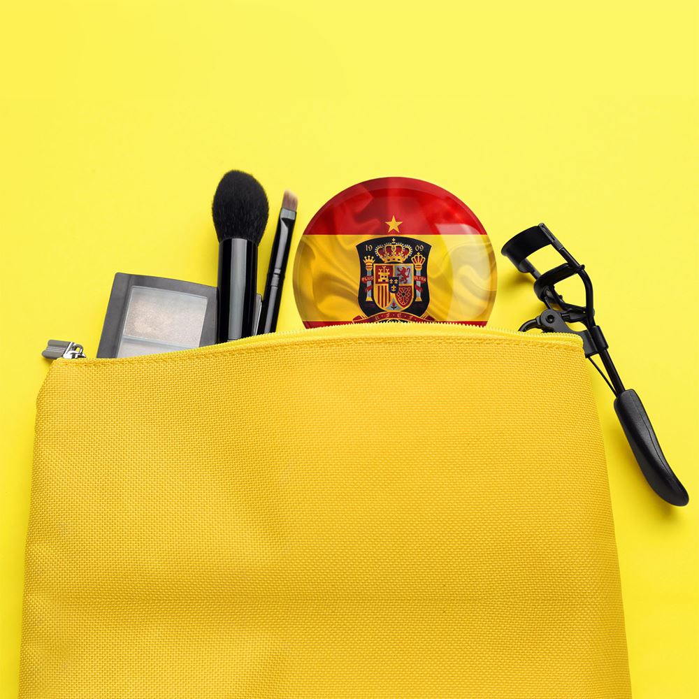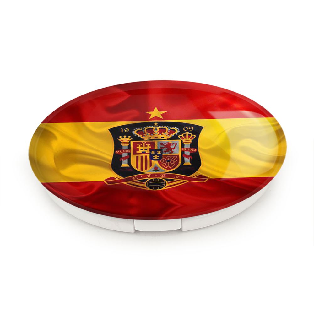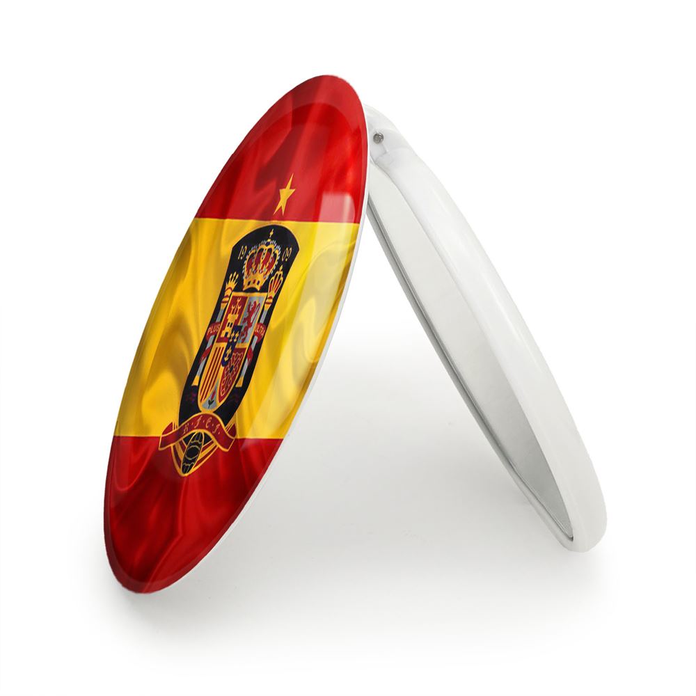 آینه های تاشو تیم ملی اسپانیا خندالو، از جنس پلاستیک فشرده ABS تولید شده و به رنگ سفید می باشد. یکی از آینه ها ابعاد واقعی را نشان داده و دیگری با قابلیت بزرگنمایی، جزئیات را بهتر نمایش می دهد. ابعاد هر یک از آینه ها، دایره ای به قطر 7.5 سانت می باشد که نه خیلی بزرگ و غیر قابل استفاده در کیف آرایشی ست و نه خیلی کوچک که تصویر خاصی در آن مشاهده نشود. آینه تاشو تیم ملی اسپانیا سایزی استاندارد و کارآمد دارد و در هر کیفی جا میگیرد. چاپ طرح بوسیله چاپگرهای دیجیتال شش رنگ با شفافیت و کیفیتی مثال زدنی بر روی یک وجه از بدنه ی آینه انجام گرفته و با روکش لمینت حرارتی پوشیده شده که در مقابل آسیب و خط و خش مقاوم بوده و کیفیت بالایی دارد. درب آینه بوسیله قفل بدنه ی آن، باز نمی ماند و کاملا بسته می شود و مناسب قرار گیری در کیف لوازم آرایش و کیف های کوچک دستی نیز هست. آینه های تاشو تیم ملی اسپانیا خندالو با تنوع طرحی بسیار بالا، سلیقه هر نوع مخاطبی را تامین میکند.