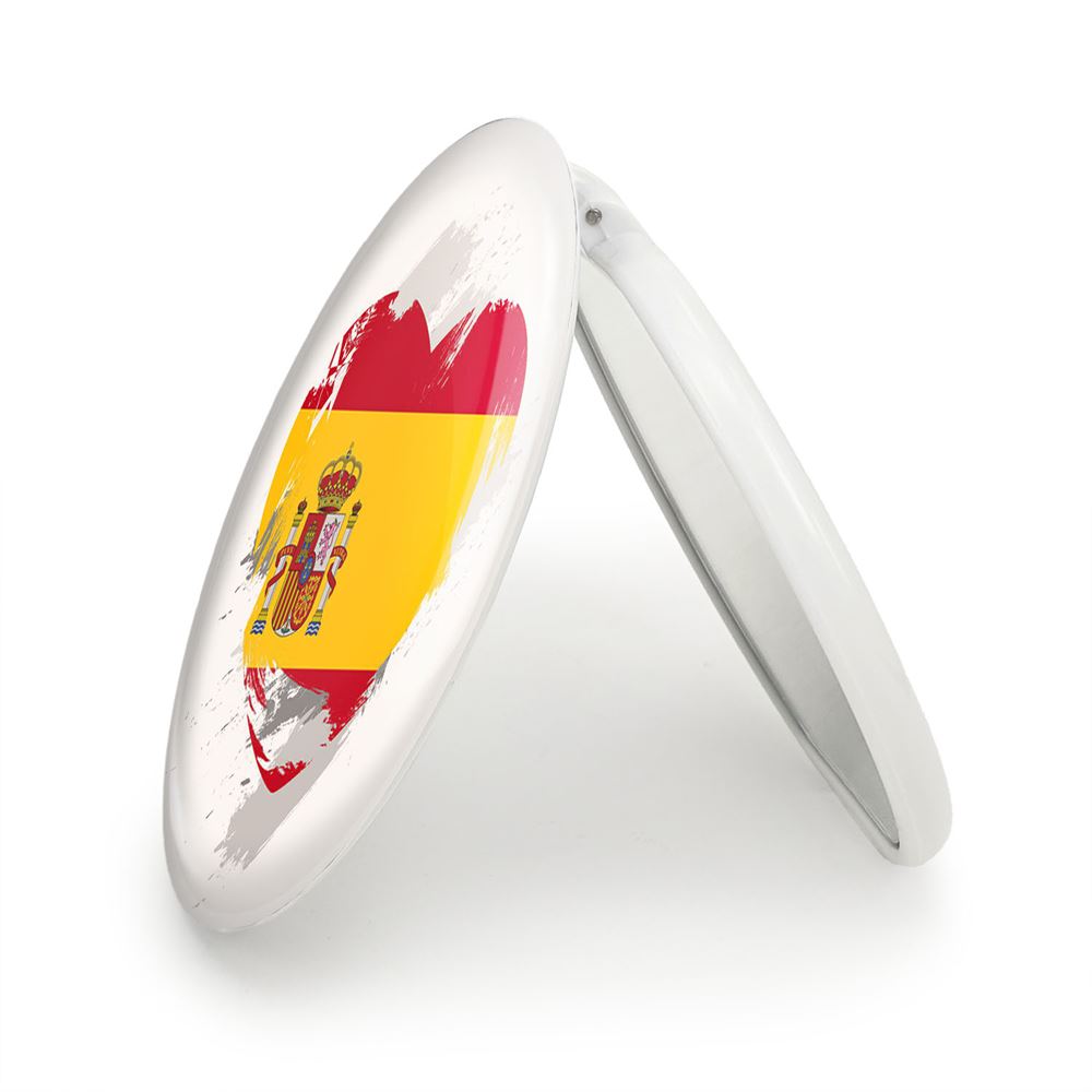 آینه های تاشو تیم ملی اسپانیا خندالو، از جنس پلاستیک فشرده ABS تولید شده و به رنگ سفید می باشد. یکی از آینه ها ابعاد واقعی را نشان داده و دیگری با قابلیت بزرگنمایی، جزئیات را بهتر نمایش می دهد. ابعاد هر یک از آینه ها، دایره ای به قطر 7.5 سانت می باشد که نه خیلی بزرگ و غیر قابل استفاده در کیف آرایشی ست و نه خیلی کوچک که تصویر خاصی در آن مشاهده نشود. آینه تاشو تیم ملی اسپانیا سایزی استاندارد و کارآمد دارد و در هر کیفی جا میگیرد. چاپ طرح بوسیله چاپگرهای دیجیتال شش رنگ با شفافیت و کیفیتی مثال زدنی بر روی یک وجه از بدنه ی آینه انجام گرفته و با روکش لمینت حرارتی پوشیده شده که در مقابل آسیب و خط و خش مقاوم بوده و کیفیت بالایی دارد. درب آینه بوسیله قفل بدنه ی آن، باز نمی ماند و کاملا بسته می شود و مناسب قرار گیری در کیف لوازم آرایش و کیف های کوچک دستی نیز هست. آینه های تاشو تیم ملی اسپانیا خندالو با تنوع طرحی بسیار بالا، سلیقه هر نوع مخاطبی را تامین میکند.