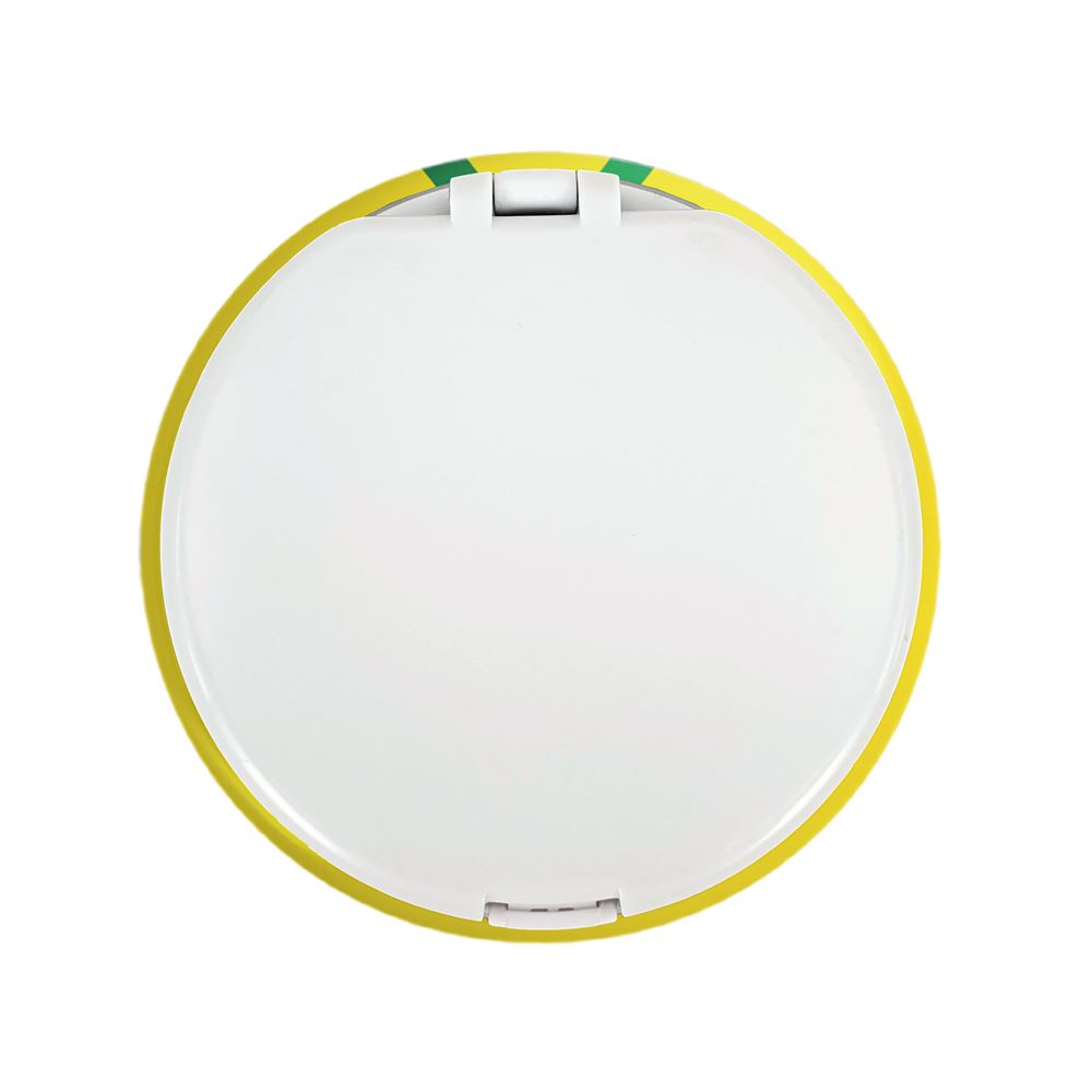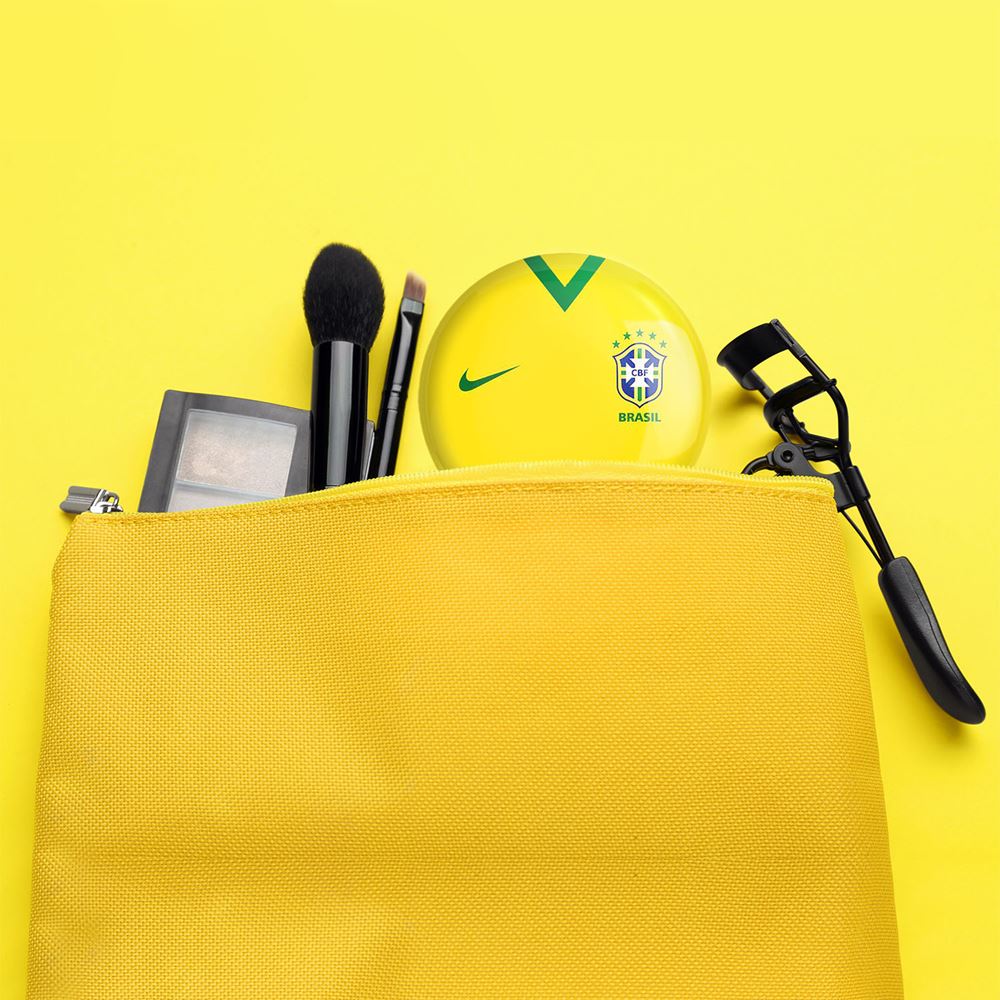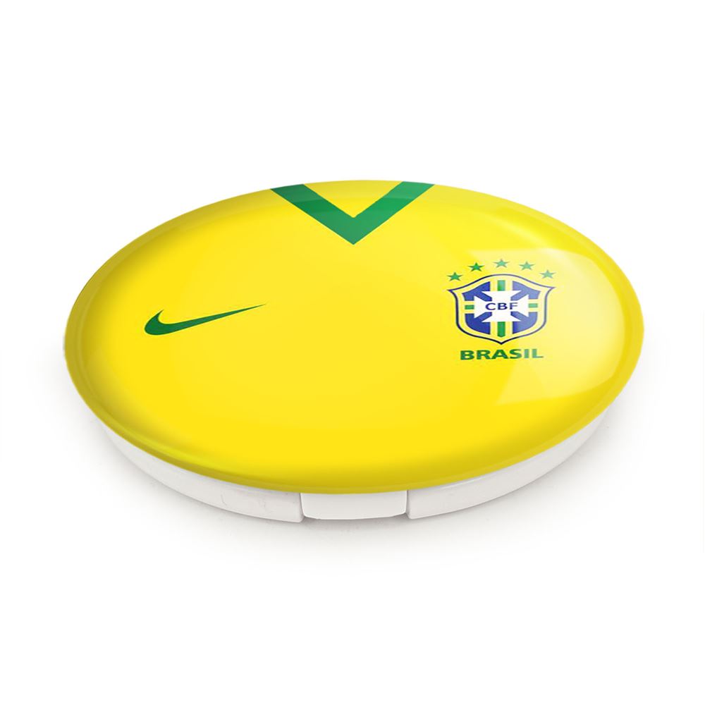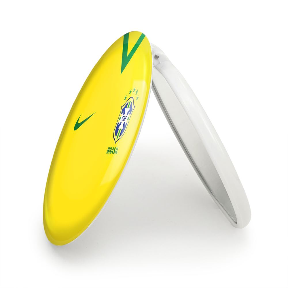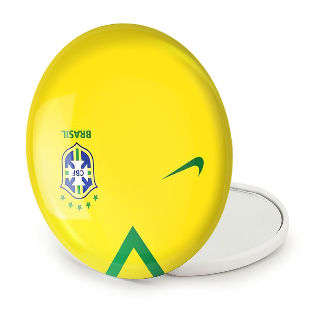 آینه های تاشو تیم ملی برزیل خندالو، از جنس پلاستیک فشرده ABS تولید شده و به رنگ سفید می باشد. یکی از آینه ها ابعاد واقعی را نشان داده و دیگری با قابلیت بزرگنمایی، جزئیات را بهتر نمایش می دهد. ابعاد هر یک از آینه ها، دایره ای به قطر 7.5 سانت می باشد که نه خیلی بزرگ و غیر قابل استفاده در کیف آرایشی ست و نه خیلی کوچک که تصویر خاصی در آن مشاهده نشود. آینه تاشو تیم ملی برزیل سایزی استاندارد و کارآمد دارد و در هر کیفی جا میگیرد. چاپ طرح بوسیله چاپگرهای دیجیتال شش رنگ با شفافیت و کیفیتی مثال زدنی بر روی یک وجه از بدنه ی آینه انجام گرفته و با روکش لمینت حرارتی پوشیده شده که در مقابل آسیب و خط و خش مقاوم بوده و کیفیت بالایی دارد. درب آینه بوسیله قفل بدنه ی آن، باز نمی ماند و کاملا بسته می شود و مناسب قرار گیری در کیف لوازم آرایش و کیف های کوچک دستی نیز هست. آینه های تاشو تیم ملی برزیل خندالو با تنوع طرحی بسیار بالا، سلیقه هر نوع مخاطبی را تامین میکند.