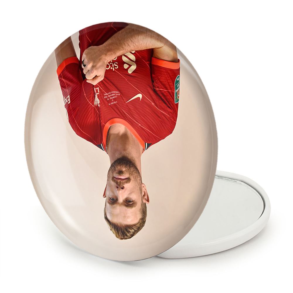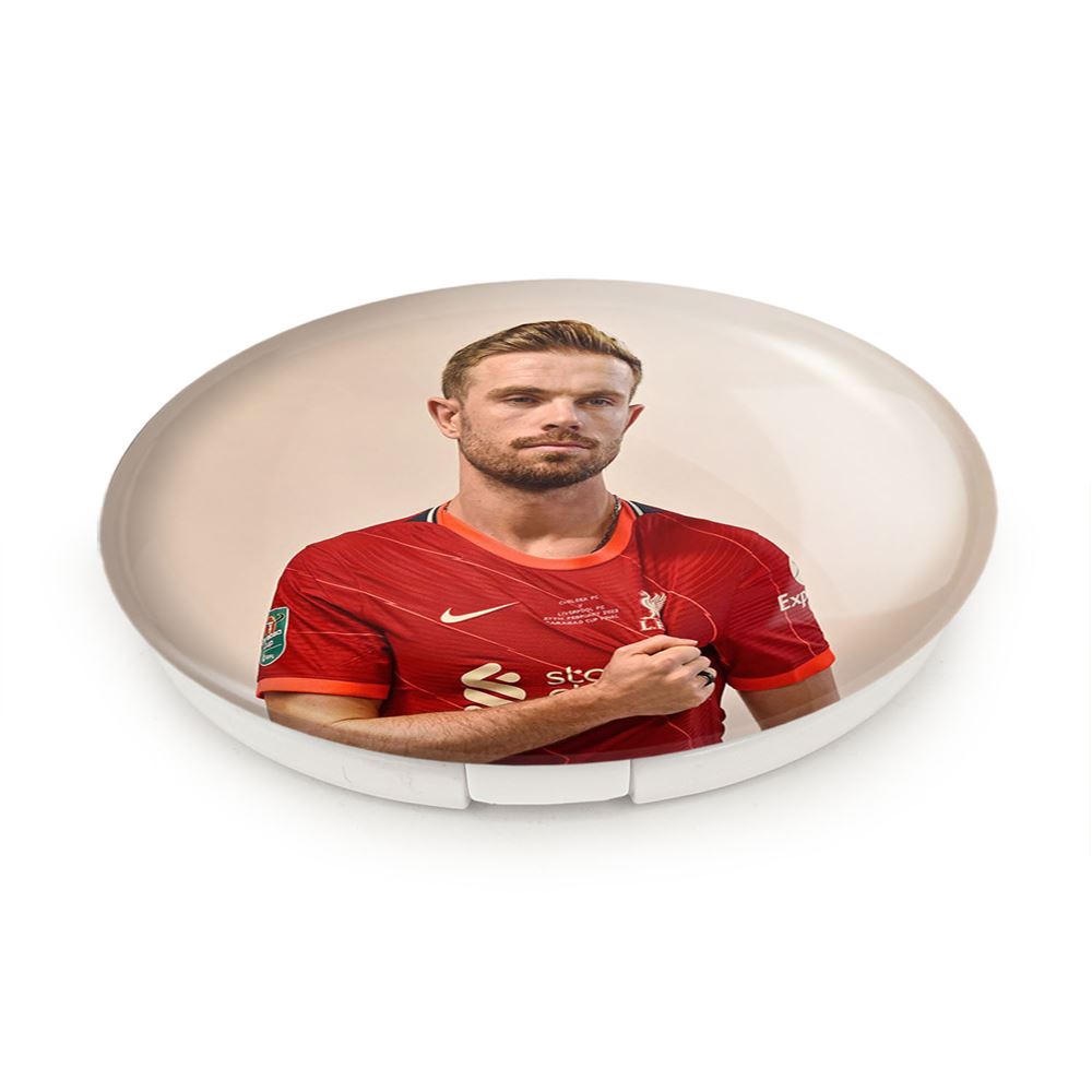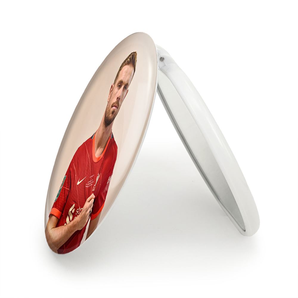 آینه های تاشو جردن هندرسون Jordan Henderson خندالو، از جنس پلاستیک فشرده ABS تولید شده و به رنگ سفید می باشد. یکی از آینه ها ابعاد واقعی را نشان داده و دیگری با قابلیت بزرگنمایی، جزئیات را بهتر نمایش می دهد. ابعاد هر یک از آینه ها، دایره ای به قطر 7.5 سانت می باشد که نه خیلی بزرگ و غیر قابل استفاده در کیف آرایشی ست و نه خیلی کوچک که تصویر خاصی در آن مشاهده نشود. آینه تاشو جردن هندرسون Jordan Henderson سایزی استاندارد و کارآمد دارد و در هر کیفی جا میگیرد. چاپ طرح بوسیله چاپگرهای دیجیتال شش رنگ با شفافیت و کیفیتی مثال زدنی بر روی یک وجه از بدنه ی آینه انجام گرفته و با روکش لمینت حرارتی پوشیده شده که در مقابل آسیب و خط و خش مقاوم بوده و کیفیت بالایی دارد. درب آینه بوسیله قفل بدنه ی آن، باز نمی ماند و کاملا بسته می شود و مناسب قرار گیری در کیف لوازم آرایش و کیف های کوچک دستی نیز هست. آینه های تاشو جردن هندرسون Jordan Henderson خندالو با تنوع طرحی بسیار بالا، سلیقه هر نوع مخاطبی را تامین میکند.