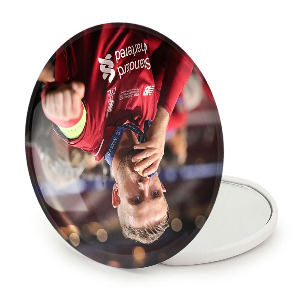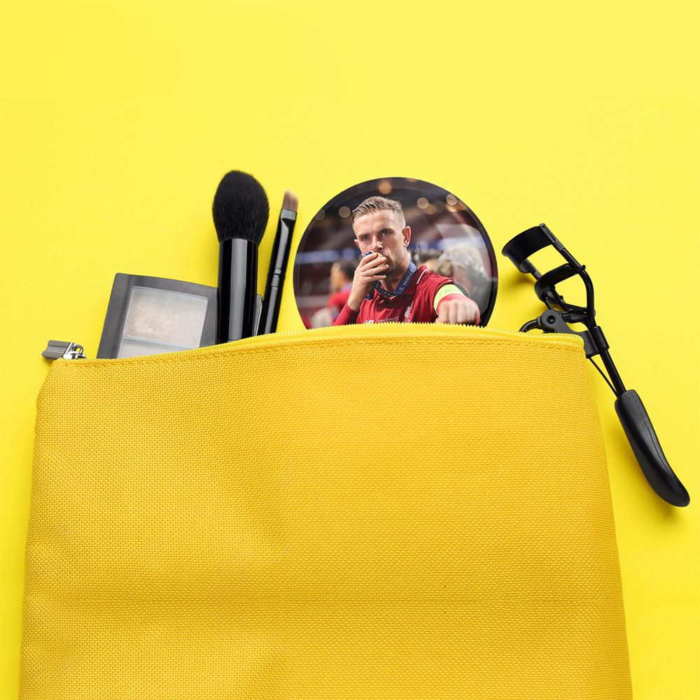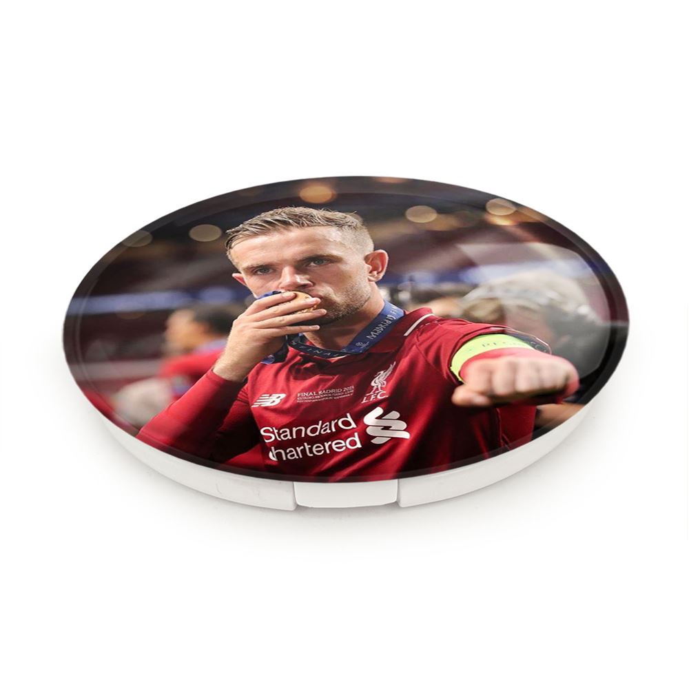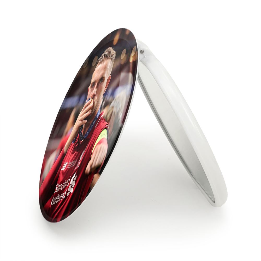 آینه های تاشو جردن هندرسون Jordan Henderson خندالو، از جنس پلاستیک فشرده ABS تولید شده و به رنگ سفید می باشد. یکی از آینه ها ابعاد واقعی را نشان داده و دیگری با قابلیت بزرگنمایی، جزئیات را بهتر نمایش می دهد. ابعاد هر یک از آینه ها، دایره ای به قطر 7.5 سانت می باشد که نه خیلی بزرگ و غیر قابل استفاده در کیف آرایشی ست و نه خیلی کوچک که تصویر خاصی در آن مشاهده نشود. آینه تاشو جردن هندرسون Jordan Henderson سایزی استاندارد و کارآمد دارد و در هر کیفی جا میگیرد. چاپ طرح بوسیله چاپگرهای دیجیتال شش رنگ با شفافیت و کیفیتی مثال زدنی بر روی یک وجه از بدنه ی آینه انجام گرفته و با روکش لمینت حرارتی پوشیده شده که در مقابل آسیب و خط و خش مقاوم بوده و کیفیت بالایی دارد. درب آینه بوسیله قفل بدنه ی آن، باز نمی ماند و کاملا بسته می شود و مناسب قرار گیری در کیف لوازم آرایش و کیف های کوچک دستی نیز هست. آینه های تاشو جردن هندرسون Jordan Henderson خندالو با تنوع طرحی بسیار بالا، سلیقه هر نوع مخاطبی را تامین میکند.