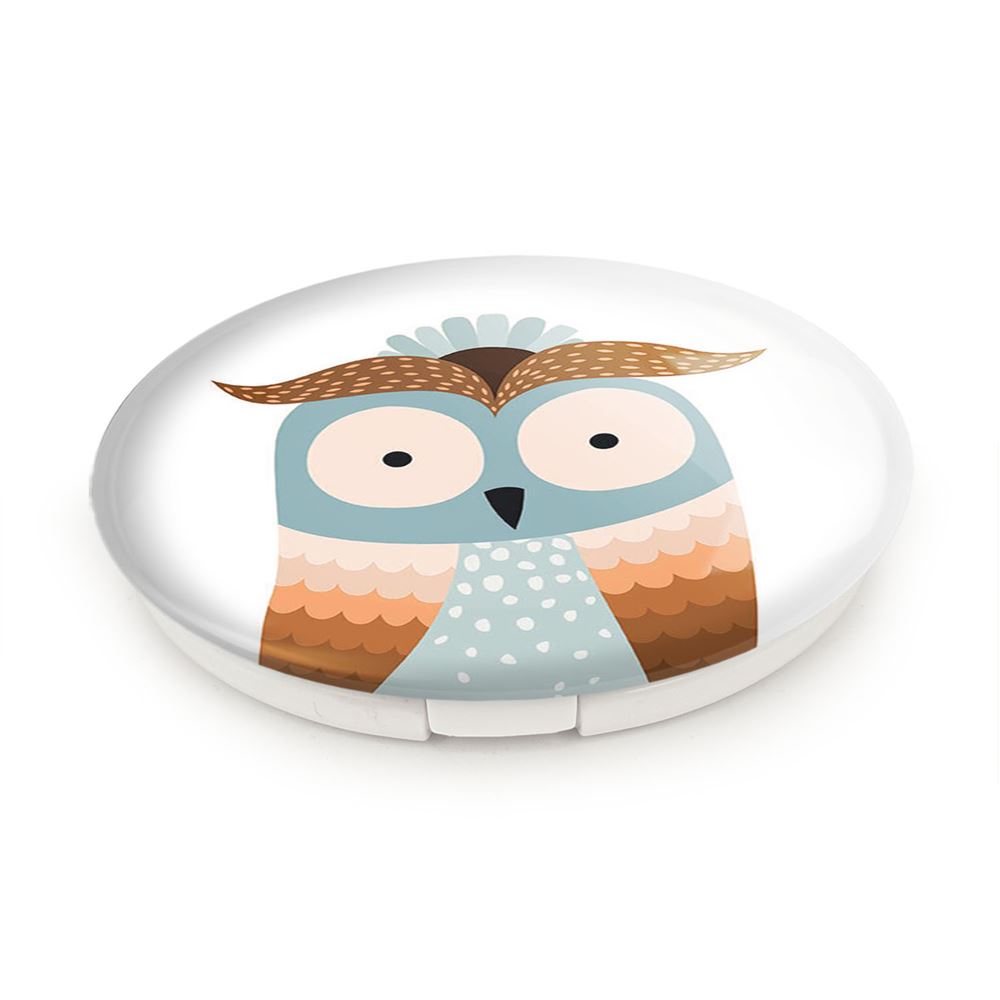 آینه های تاشو جغد خندالو، از جنس پلاستیک فشرده ABS تولید شده و به رنگ سفید می باشد. یکی از آینه ها ابعاد واقعی را نشان داده و دیگری با قابلیت بزرگنمایی، جزئیات را بهتر نمایش می دهد.