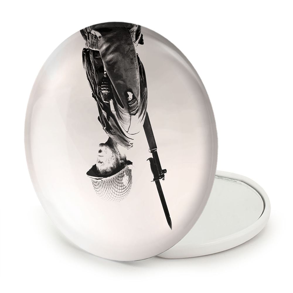 آینه های تاشو جوخه برادران Band Of Brothers خندالو، از جنس پلاستیک فشرده ABS تولید شده و به رنگ سفید می باشد. یکی از آینه ها ابعاد واقعی را نشان داده و دیگری با قابلیت بزرگنمایی، جزئیات را بهتر نمایش می دهد. ابعاد هر یک از آینه ها، دایره ای به قطر 7.5 سانت می باشد که نه خیلی بزرگ و غیر قابل استفاده در کیف آرایشی ست و نه خیلی کوچک که تصویر خاصی در آن مشاهده نشود. آینه تاشو جوخه برادران Band Of Brothers سایزی استاندارد و کارآمد دارد و در هر کیفی جا میگیرد. چاپ طرح بوسیله چاپگرهای دیجیتال شش رنگ با شفافیت و کیفیتی مثال زدنی بر روی یک وجه از بدنه ی آینه انجام گرفته و با روکش لمینت حرارتی پوشیده شده که در مقابل آسیب و خط و خش مقاوم بوده و کیفیت بالایی دارد. درب آینه بوسیله قفل بدنه ی آن، باز نمی ماند و کاملا بسته می شود و مناسب قرار گیری در کیف لوازم آرایش و کیف های کوچک دستی نیز هست. آینه های تاشو جوخه برادران Band Of Brothers خندالو با تنوع طرحی بسیار بالا، سلیقه هر نوع مخاطبی را تامین میکند.