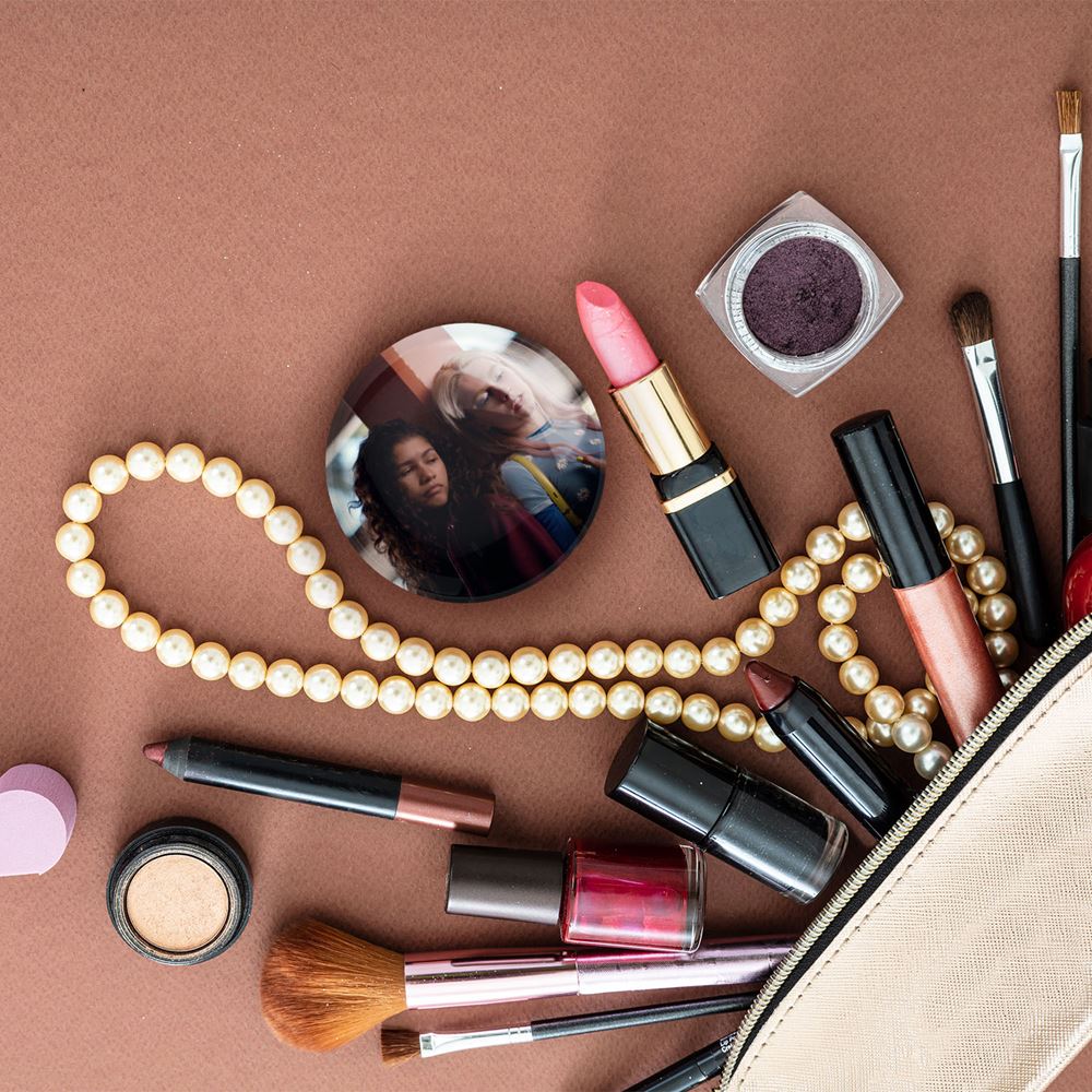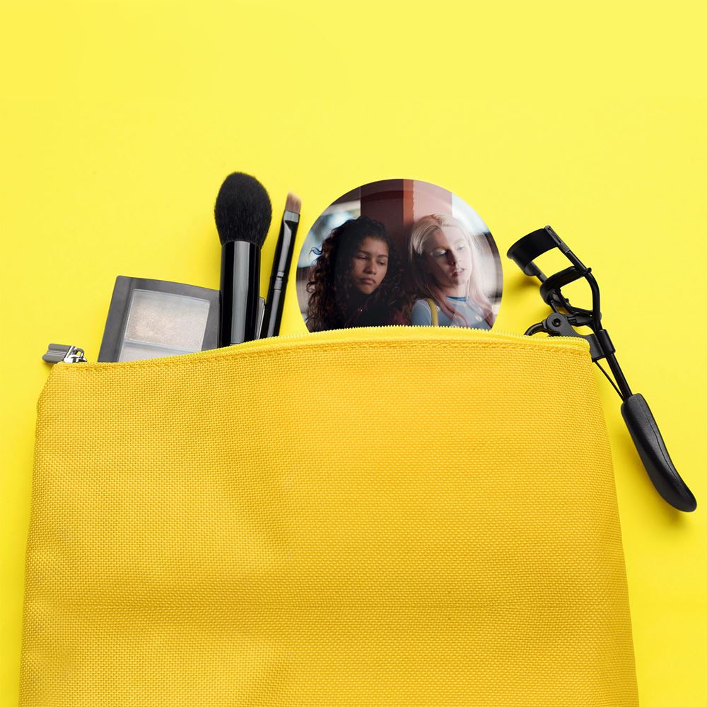 آینه های تاشو جولز وان و رو بنت سریال سرخوشی Euphoria خندالو، از جنس پلاستیک فشرده ABS تولید شده و به رنگ سفید می باشد. یکی از آینه ها ابعاد واقعی را نشان داده و دیگری با قابلیت بزرگنمایی، جزئیات را بهتر نمایش می دهد. ابعاد هر یک از آینه ها، دایره ای به قطر 7.5 سانت می باشد که نه خیلی بزرگ و غیر قابل استفاده در کیف آرایشی ست و نه خیلی کوچک که تصویر خاصی در آن مشاهده نشود. آینه تاشو جولز وان و رو بنت سریال سرخوشی Euphoria سایزی استاندارد و کارآمد دارد و در هر کیفی جا میگیرد. چاپ طرح بوسیله چاپگرهای دیجیتال شش رنگ با شفافیت و کیفیتی مثال زدنی بر روی یک وجه از بدنه ی آینه انجام گرفته و با روکش لمینت حرارتی پوشیده شده که در مقابل آسیب و خط و خش مقاوم بوده و کیفیت بالایی دارد. درب آینه بوسیله قفل بدنه ی آن، باز نمی ماند و کاملا بسته می شود و مناسب قرار گیری در کیف لوازم آرایش و کیف های کوچک دستی نیز هست. آینه های تاشو جولز وان و رو بنت سریال سرخوشی Euphoria خندالو با تنوع طرحی بسیار بالا، سلیقه هر نوع مخاطبی را تامین میکند.
