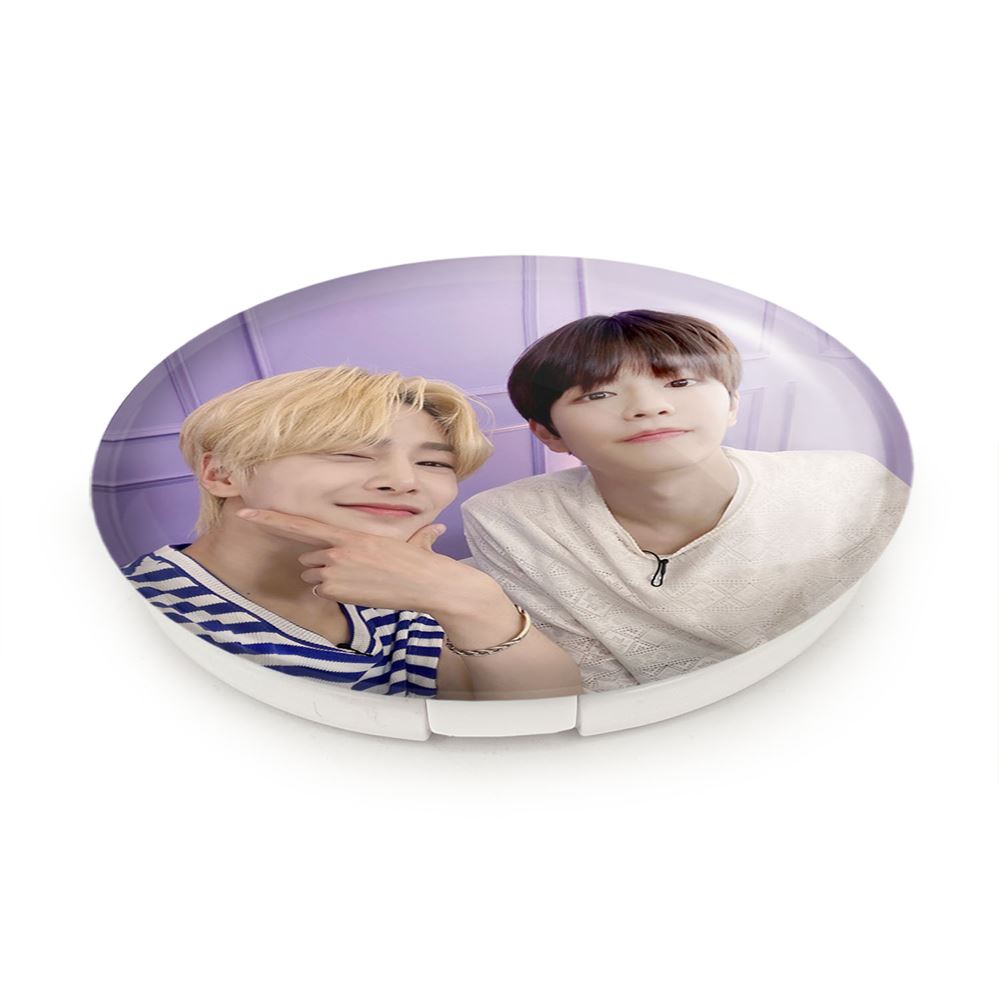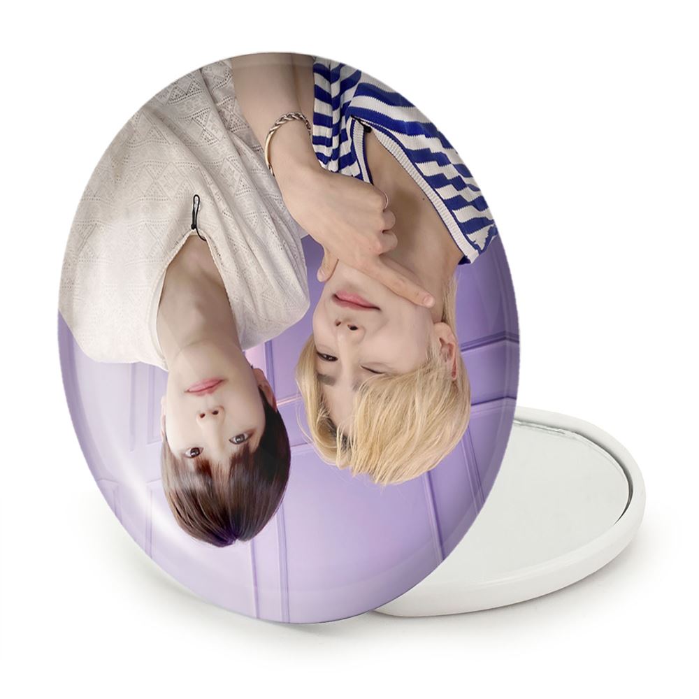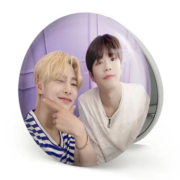 آینه های تاشو جونگین و سونگمین گروه استری کیدز Stary Kids خندالو، از جنس پلاستیک فشرده ABS تولید شده و به رنگ سفید می باشد. یکی از آینه ها ابعاد واقعی را نشان داده و دیگری با قابلیت بزرگنمایی، جزئیات را بهتر نمایش می دهد. ابعاد هر یک از آینه ها، دایره ای به قطر 7.5 سانت می باشد که نه خیلی بزرگ و غیر قابل استفاده در کیف آرایشی ست و نه خیلی کوچک که تصویر خاصی در آن مشاهده نشود. آینه تاشو جونگین و سونگمین گروه استری کیدز Stary Kids سایزی استاندارد و کارآمد دارد و در هر کیفی جا میگیرد. چاپ طرح بوسیله چاپگرهای دیجیتال شش رنگ با شفافیت و کیفیتی مثال زدنی بر روی یک وجه از بدنه ی آینه انجام گرفته و با روکش لمینت حرارتی پوشیده شده که در مقابل آسیب و خط و خش مقاوم بوده و کیفیت بالایی دارد. درب آینه بوسیله قفل بدنه ی آن، باز نمی ماند و کاملا بسته می شود و مناسب قرار گیری در کیف لوازم آرایش و کیف های کوچک دستی نیز هست. آینه های تاشو جونگین و سونگمین گروه استری کیدز Stary Kids خندالو با تنوع طرحی بسیار بالا، سلیقه هر نوع مخاطبی را تامین میکند.