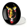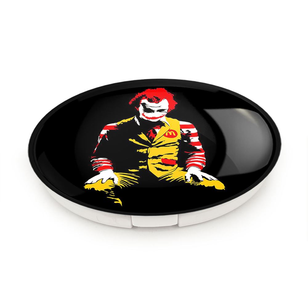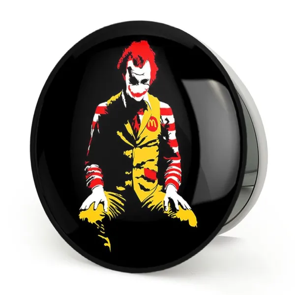 آینه های تاشو جوکر Joker خندالو، از جنس پلاستیک فشرده ABS تولید شده و به رنگ سفید می باشد. یکی از آینه ها ابعاد واقعی را نشان داده و دیگری با قابلیت بزرگنمایی، جزئیات را بهتر نمایش می دهد. ابعاد هر یک از آینه ها، دایره ای به قطر 7.5 سانت می باشد که نه خیلی بزرگ و غیر قابل استفاده در کیف آرایشی ست و نه خیلی کوچک که تصویر خاصی در آن مشاهده نشود. آینه تاشو جوکر Joker سایزی استاندارد و کارآمد دارد و در هر کیفی جا میگیرد. چاپ طرح بوسیله چاپگرهای دیجیتال شش رنگ با شفافیت و کیفیتی مثال زدنی بر روی یک وجه از بدنه ی آینه انجام گرفته و با روکش لمینت حرارتی پوشیده شده که در مقابل آسیب و خط و خش مقاوم بوده و کیفیت بالایی دارد. درب آینه بوسیله قفل بدنه ی آن، باز نمی ماند و کاملا بسته می شود و مناسب قرار گیری در کیف لوازم آرایش و کیف های کوچک دستی نیز هست. آینه های تاشو جوکر Joker خندالو با تنوع طرحی بسیار بالا، سلیقه هر نوع مخاطبی را تامین میکند.