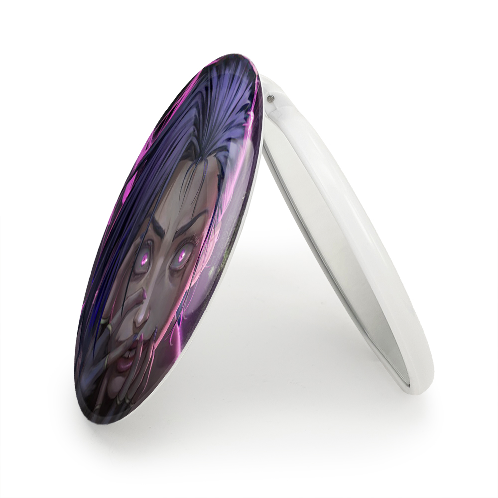 آینه های تاشو جینکس آرکین (Arcane) خندالو، از جنس پلاستیک فشرده ABS تولید شده و به رنگ سفید می باشد. یکی از آینه ها ابعاد واقعی را نشان داده و دیگری با قابلیت بزرگنمایی، جزئیات را بهتر نمایش می دهد. ابعاد هر یک از آینه ها، دایره ای به قطر 7.5 سانت می باشد که نه خیلی بزرگ و غیر قابل استفاده در کیف آرایشی ست و نه خیلی کوچک که تصویر خاصی در آن مشاهده نشود. آینه تاشو جینکس آرکین (Arcane) سایزی استاندارد و کارآمد دارد و در هر کیفی جا میگیرد. چاپ طرح بوسیله چاپگرهای دیجیتال شش رنگ با شفافیت و کیفیتی مثال زدنی بر روی یک وجه از بدنه ی آینه انجام گرفته و با روکش لمینت حرارتی پوشیده شده که در مقابل آسیب و خط و خش مقاوم بوده و کیفیت بالایی دارد. درب آینه بوسیله قفل بدنه ی آن، باز نمی ماند و کاملا بسته می شود و مناسب قرار گیری در کیف لوازم آرایش و کیف های کوچک دستی نیز هست. آینه های تاشو جینکس آرکین (Arcane) خندالو با تنوع طرحی بسیار بالا، سلیقه هر نوع مخاطبی را تامین میکند.