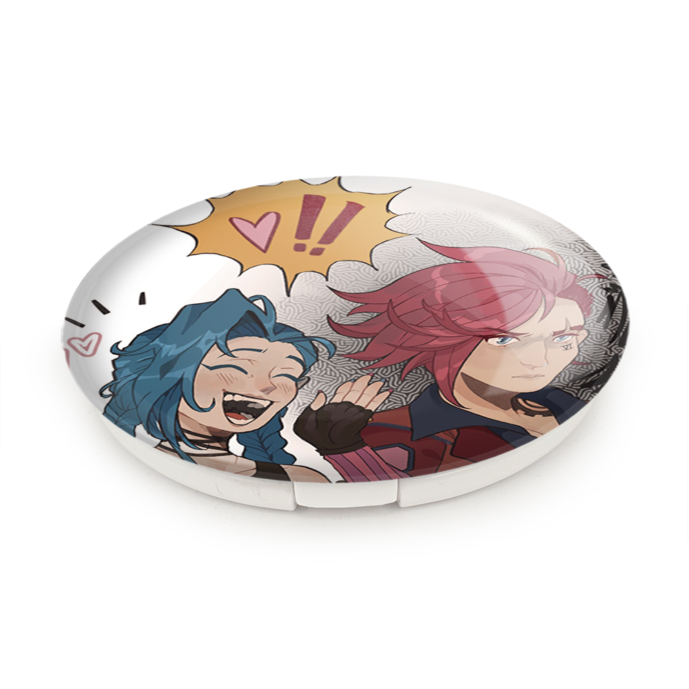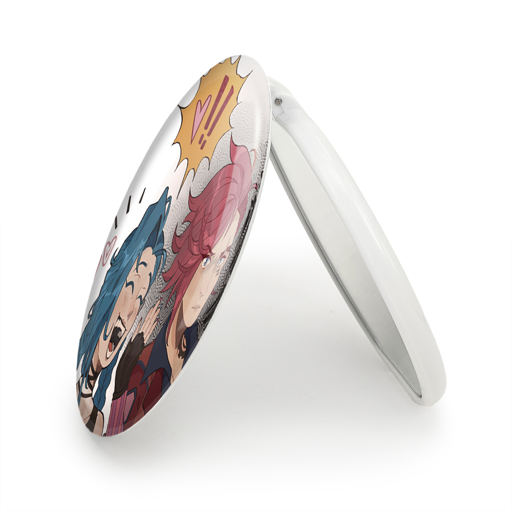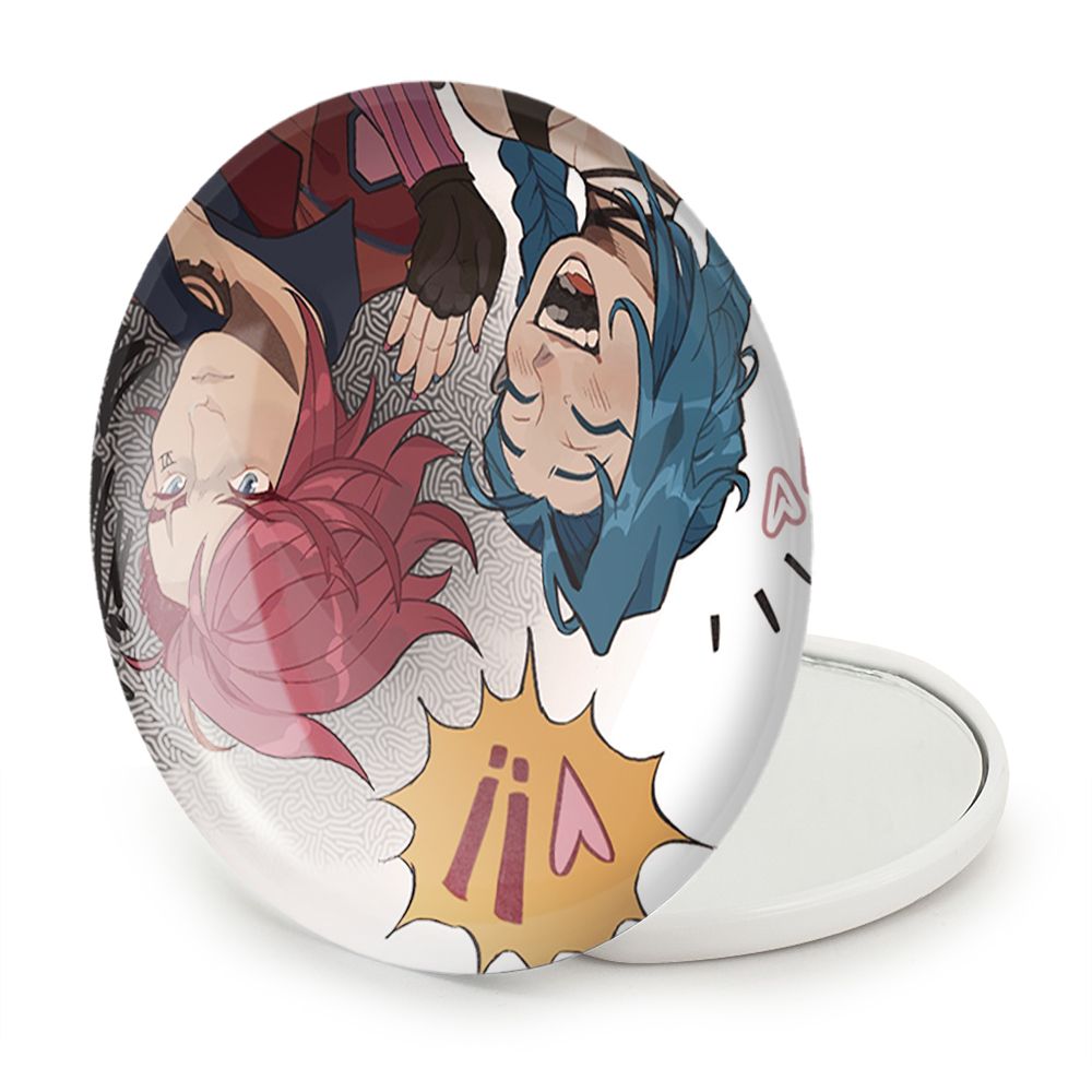آینه های تاشو جینکس و وی آرکین (Arcane) خندالو، از جنس پلاستیک فشرده ABS تولید شده و به رنگ سفید می باشد. یکی از آینه ها ابعاد واقعی را نشان داده و دیگری با قابلیت بزرگنمایی، جزئیات را بهتر نمایش می دهد. ابعاد هر یک از آینه ها، دایره ای به قطر 7.5 سانت می باشد که نه خیلی بزرگ و غیر قابل استفاده در کیف آرایشی ست و نه خیلی کوچک که تصویر خاصی در آن مشاهده نشود. آینه تاشو جینکس و وی آرکین (Arcane) سایزی استاندارد و کارآمد دارد و در هر کیفی جا میگیرد. چاپ طرح بوسیله چاپگرهای دیجیتال شش رنگ با شفافیت و کیفیتی مثال زدنی بر روی یک وجه از بدنه ی آینه انجام گرفته و با روکش لمینت حرارتی پوشیده شده که در مقابل آسیب و خط و خش مقاوم بوده و کیفیت بالایی دارد. درب آینه بوسیله قفل بدنه ی آن، باز نمی ماند و کاملا بسته می شود و مناسب قرار گیری در کیف لوازم آرایش و کیف های کوچک دستی نیز هست. آینه های تاشو جینکس و وی آرکین (Arcane) خندالو با تنوع طرحی بسیار بالا، سلیقه هر نوع مخاطبی را تامین میکند.