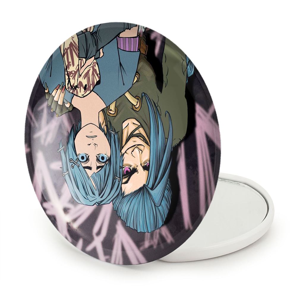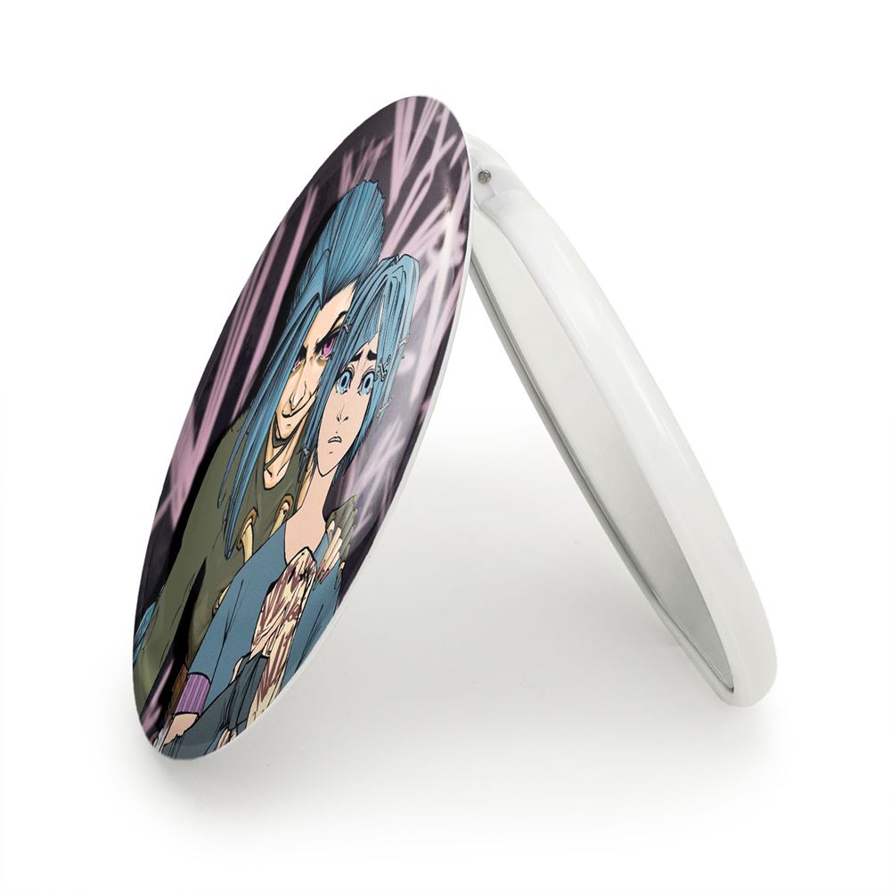 آینه های تاشو جینکس و پاودر آرکین Arcane خندالو، از جنس پلاستیک فشرده ABS تولید شده و به رنگ سفید می باشد. یکی از آینه ها ابعاد واقعی را نشان داده و دیگری با قابلیت بزرگنمایی، جزئیات را بهتر نمایش می دهد. ابعاد هر یک از آینه ها، دایره ای به قطر 7.5 سانت می باشد که نه خیلی بزرگ و غیر قابل استفاده در کیف آرایشی ست و نه خیلی کوچک که تصویر خاصی در آن مشاهده نشود. آینه تاشو جینکس و پاودر آرکین Arcane سایزی استاندارد و کارآمد دارد و در هر کیفی جا میگیرد. چاپ طرح بوسیله چاپگرهای دیجیتال شش رنگ با شفافیت و کیفیتی مثال زدنی بر روی یک وجه از بدنه ی آینه انجام گرفته و با روکش لمینت حرارتی پوشیده شده که در مقابل آسیب و خط و خش مقاوم بوده و کیفیت بالایی دارد. درب آینه بوسیله قفل بدنه ی آن، باز نمی ماند و کاملا بسته می شود و مناسب قرار گیری در کیف لوازم آرایش و کیف های کوچک دستی نیز هست. آینه های تاشو جینکس و پاودر آرکین Arcane خندالو با تنوع طرحی بسیار بالا، سلیقه هر نوع مخاطبی را تامین میکند.